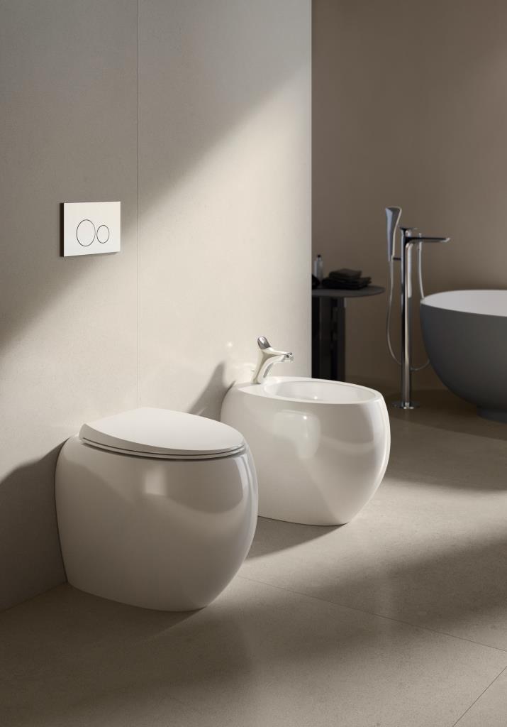 Forme scultoree per l’ambiente bagno sono le protagoniste delle collezioni Rak-Cloue e Rak-Petit, disegnate da Maurizio Scutellà per Rak Ceramics