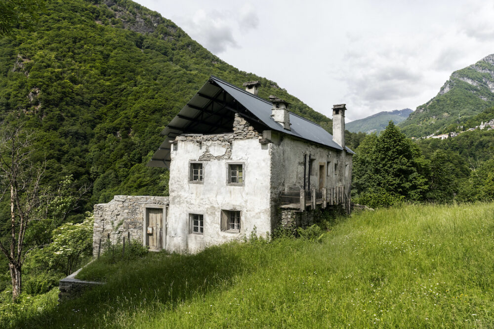 Infatti, il potere evocativo dell’intervento di restauro di Casa Raslei è notevole, in esso coesistono due dimensioni temporali ma l’approccio scelto dagli autori diverge dalle consuete modalità compositive dell’Upgrade Architecture. Il nuovo è senza clamore, retrocede sullo sfondo, limitandosi a pochi elementi a basso impatto costruttivo e tecnologico. Ci troviamo nella profonda valle Onsernone, dove un complesso di case in pietra – ampliato nel corso delle generazioni e rimasto disabitato per molti anni – è arroccato su un crinale aperto verso le montagne con una terrazza.