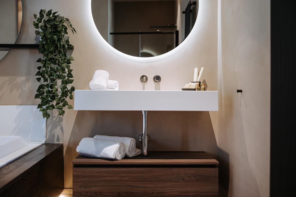 In particolare, tutti i rubinetti scelti in fase di progetto appartengono alla serie Reverso di Ritmonio, che – combinando performance tecniche a un’estetica senza tempo – contribuiscono a rendere le stanze ancora più confortevoli per gli ospiti. Un’esperienza di wellness completa, dunque, che passa attraverso l’ambiente bagno, sempre di più identificato come lo spazio leisure per eccellenza.