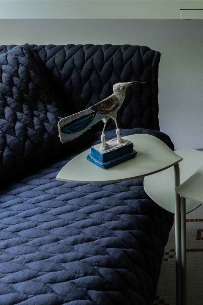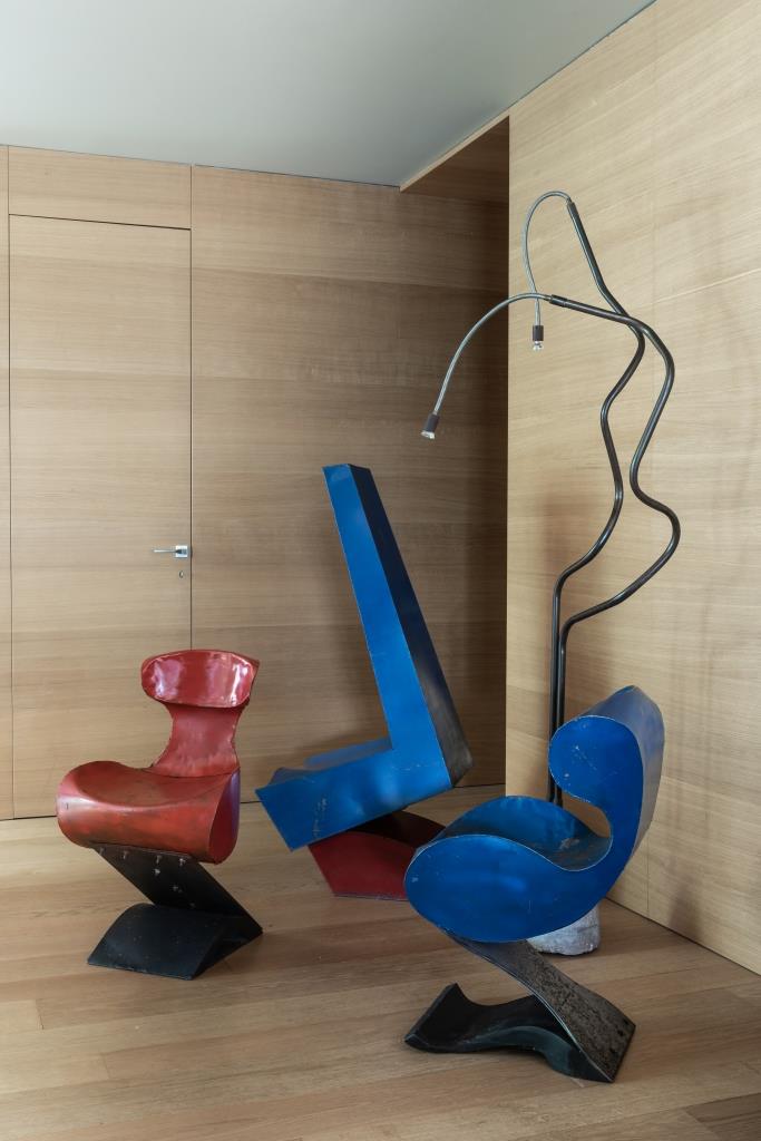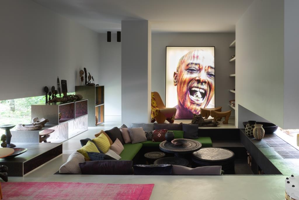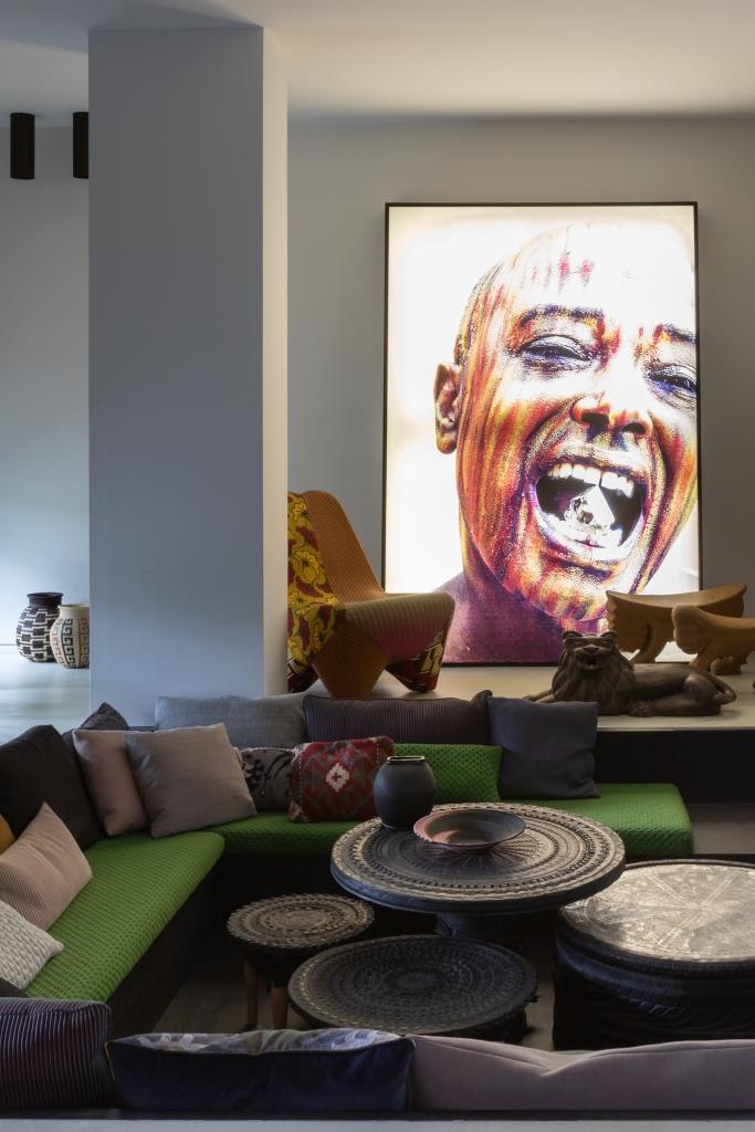 E sempre di Urquiola, Ruff, una scultura più che una poltrona, esplicito tributo della designer italiana d’adozione sia alle sue origini sia all’arte di Eduardo Chillida, compianto scultore iberico di fama internazionale. Evidente è anche il desiderio di intrecciare più discipline, scuole, stili: la modernità dei prodotti di design convive con le opere d’arte del pittore e scultore egiziano Fathi Hassan e le fotografie del senegalese Boubacar Touré Mandémory, nonché con la semplicità e l’unicità di oggetti fatti a mano prevalentemente africani, vedi il tappeto a mosaico nel corridoio e il tricot e i tessuti tradizionali usati come rivestimenti.
