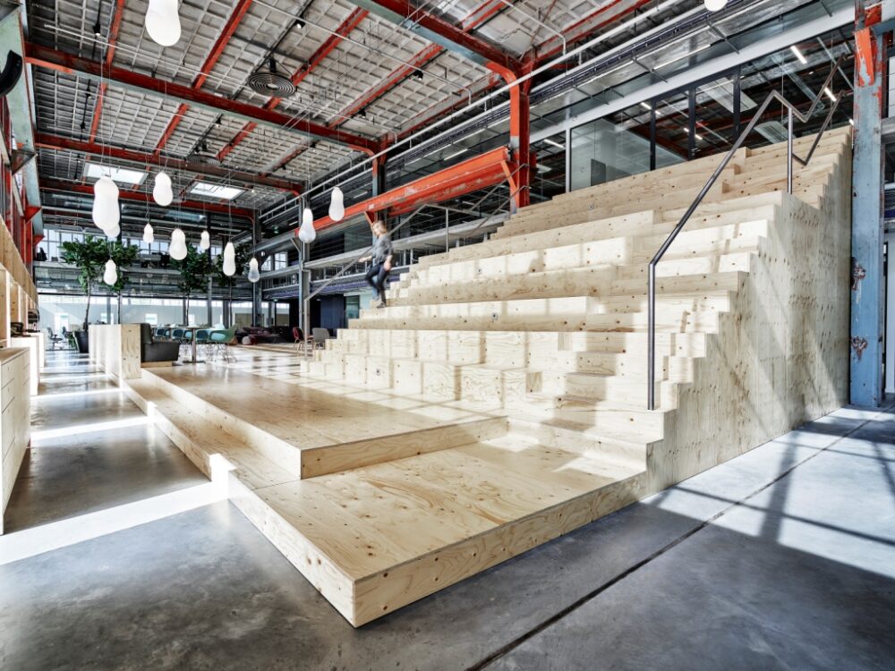 Grandi scale fungono da teatro di presentazione dei numerosi eventi ospitati nell’edificio: «crediamo che le più brillanti innovazioni siano generate dai crossover disciplinari», sostiene infatti Thomas Paulen, CEO di van Berlo.