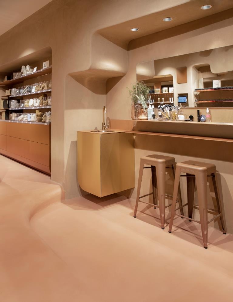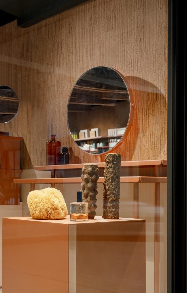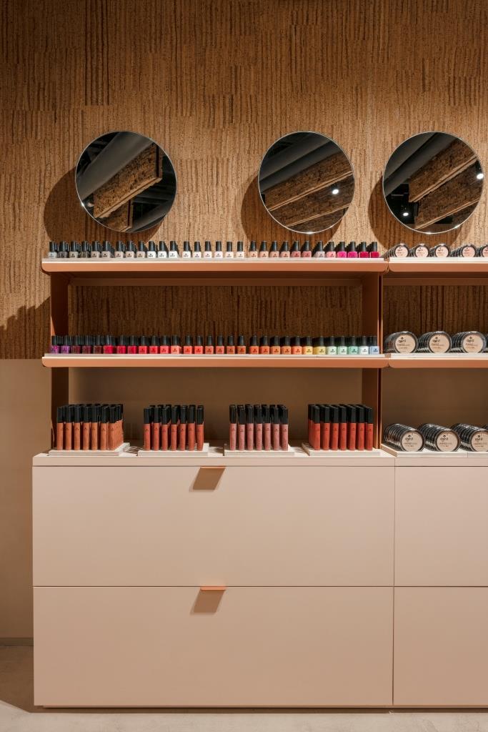 Atelier Du Pont individua materie prime naturali per definire gli interni di tre negozi specializzati in cosmetica green. Dove terra, sughero e fibre vegetali creano piccoli mondi in perfetto equilibrio