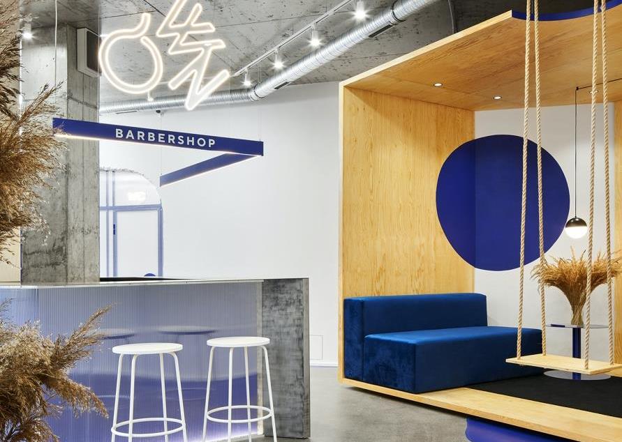 Nella cittadina baltica di Kaliningrad Line Design Studio disegna un negozio che rompe con con l’idea tradizionale di bottega di barbiere, per creare uno spazio dinamico che mette la persona al centro