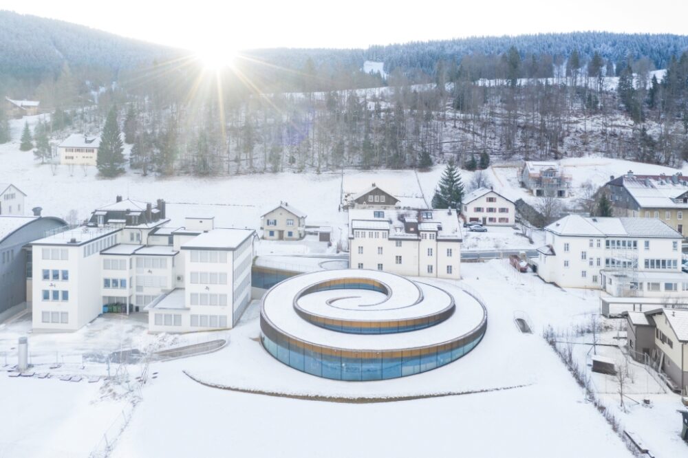Una spirale per il nuovo Museo Atelier Audermars Piguet a Le Brassus, nel Giura Svizzero, progettato da BIG con Atelier Brückner e CCHE. La forma, utilizzata con successo dallo studio danese a partire dal progetto per il padiglione di Expo Shangai 2010 e poi riproposta per il TEK Cube Building a Taipei e per la biblioteca nazionale di Astana, organizza a una scala più raccolta lo spazio espositivo della casa di produzione di orologi fondata nel 1875 proprio lì, dove oggi sorge il museo.
