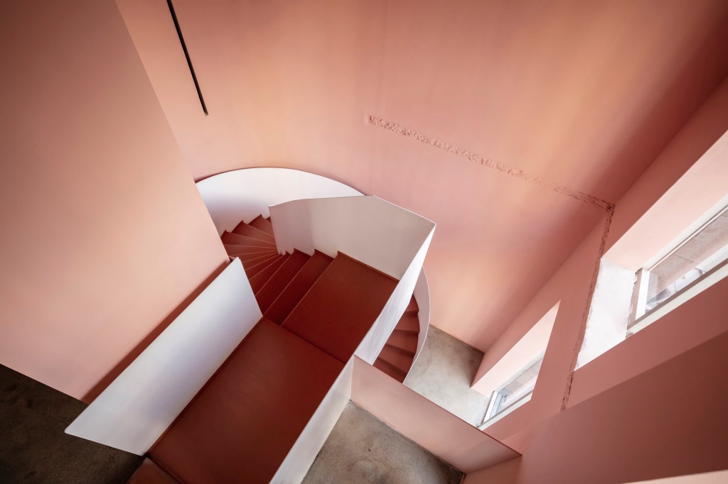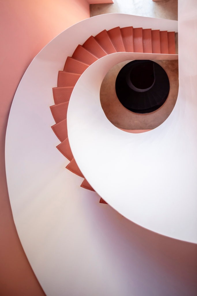Al tutto si aggiungono le forme ondulate dei complementi d’arredo, dal camerino al divano dove accomodarsi per una pausa relax, mentre nell’unico punto dove il sole batteva diretto sono stati posizionati, al fine di sfumare e ammorbidire l’illuminazione, due periscopi a parete con filtri rossi da cui è anche possibile guardare fuori.