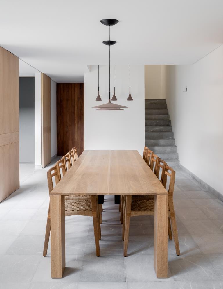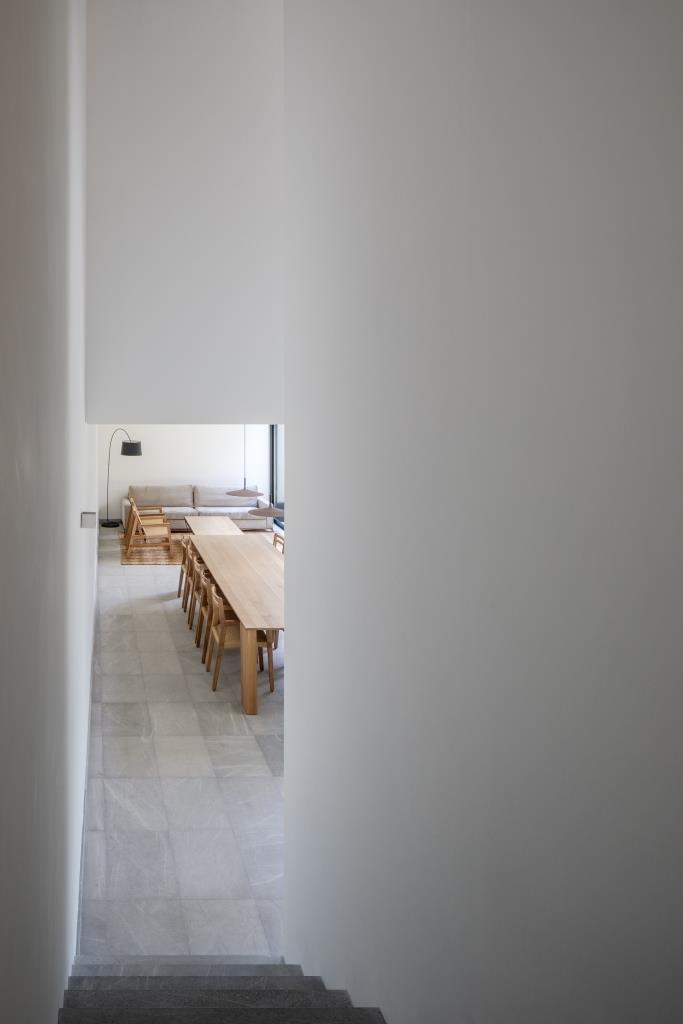 Ogni abitazione adotta un diverso impianto distributivo in funzione della superficie, con i quattro edifici centrali articolati su una pianta rettangolare e i quattro d’angolo, a forma di L, connotati da ambienti ottimizzati per massimizzare l’utilizzo dello spazio. Pareti in colori tenui e pavimenti in pietra grigia conferiscono agli interni un’atmosfera ariosa in contrasto con il rigore geometrico e cromatico dell’involucro, e adottano arredi e porte scorrevoli dal design essenziale che richiamano stilisticamente le soluzioni utilizzate da PPAA in altri progetti abitativi.