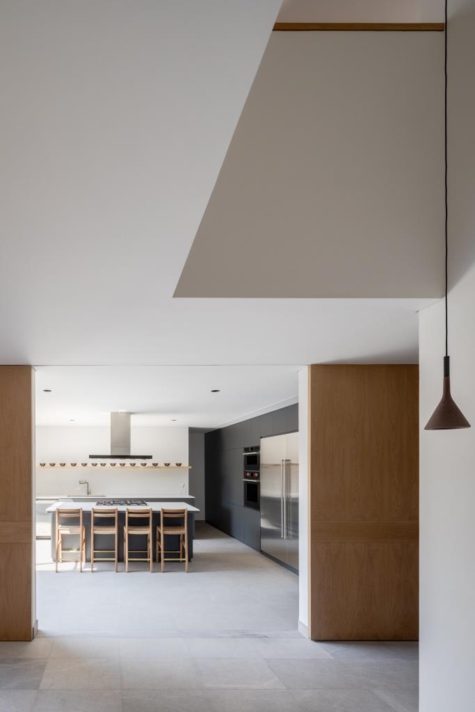 La distribuzione funzionale degli interni rispecchia questa suddivisione, organizzando gli ambienti in base al livello di privacy richiesto. Il piano terra è collegato direttamente ai giardini di pertinenza e ospita gli spazi destinati alla socialità, mentre al primo piano sono localizzati gli ambienti più intimi e privati come le camere da letto e le lounge, da cui si accede alle terrazze del secondo e ultimo piano.