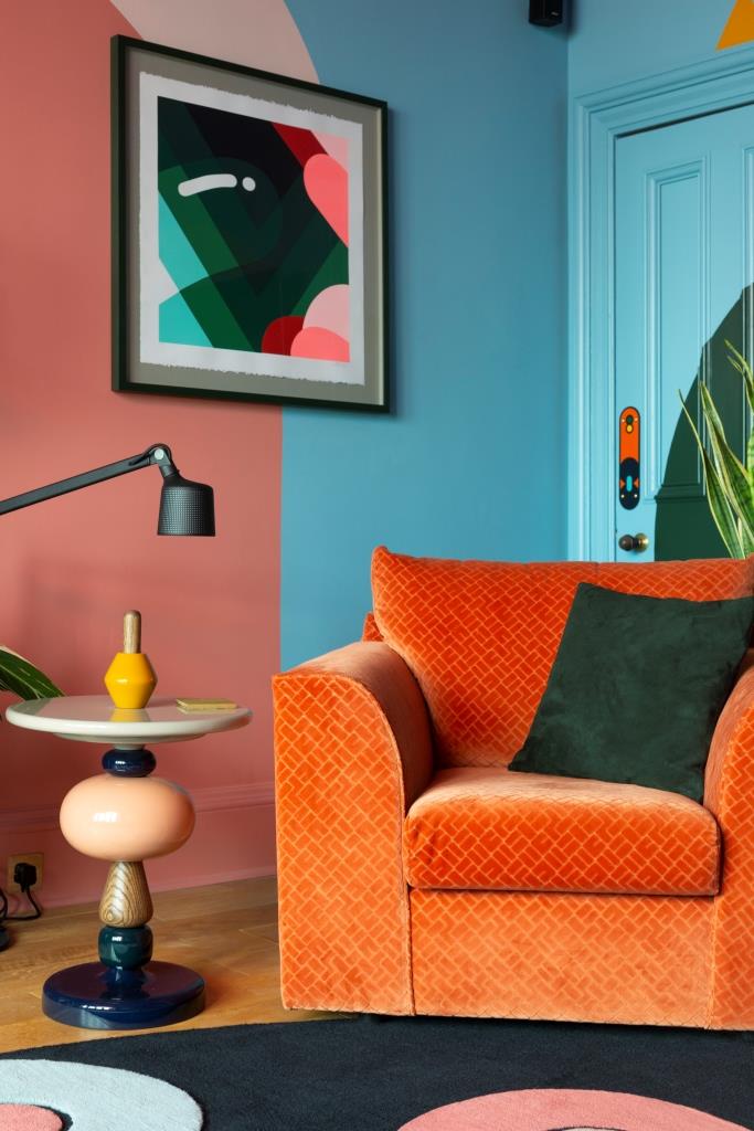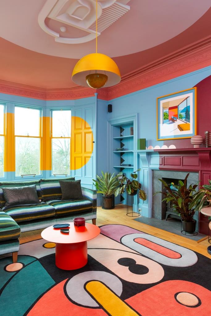Ispirato dal movimento Supergraphics che tra gli Anni 60 e 70 ha portato avanti interventi di rottura in interni storici, completamente ridisegnati attraverso l’uso di grafiche geometriche e di palette accese, Buckley ha individuato nove tonalità guida, alternando nuance calde e fredde, che secondo lui sono in grado di “influenzare le persone a un livello profondo, provocando emozioni”.