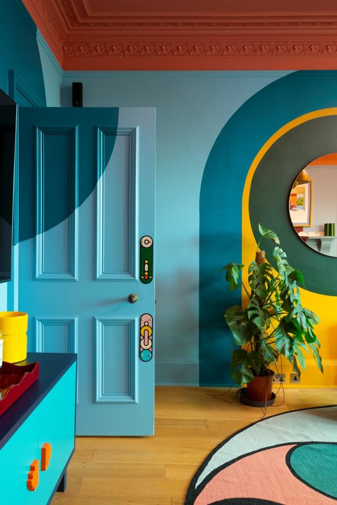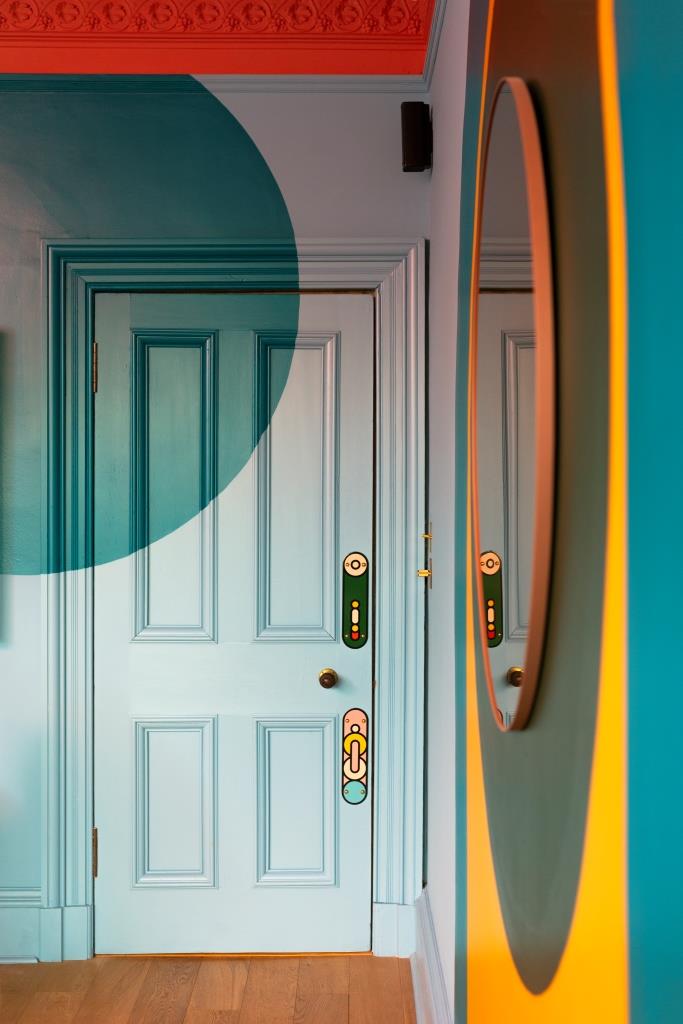 Ispirato dal movimento Supergraphics che tra gli Anni 60 e 70 ha portato avanti interventi di rottura in interni storici, completamente ridisegnati attraverso l’uso di grafiche geometriche e di palette accese, Buckley ha individuato nove tonalità guida, alternando nuance calde e fredde, che secondo lui sono in grado di “influenzare le persone a un livello profondo, provocando emozioni”.