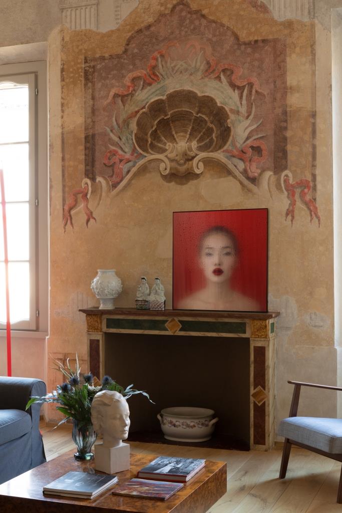Gli affreschi sulle porte della cucina e del soggiorno stavano per essere buttati via perché si pensava risalissero agli Anni 50 e fossero privi di valore – spiega Luigi.- Quando sono stati rinvenuti ci siamo emozionati. Lo stesso è successo quando sul soffitto di uno dei bagni, che stava per essere demolito per far posto alle tubature, è emerso un affresco cinquecentesco raffigurante il mito di Fetonte”. Altre gemme si nascondevano nell’attuale salone di rappresentanza: candelabri della seconda metà del Settecento e un maestoso cartiglio seicentesco sopra il camino.