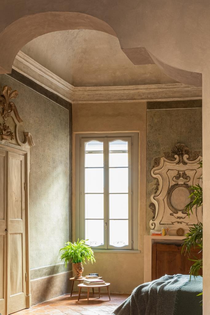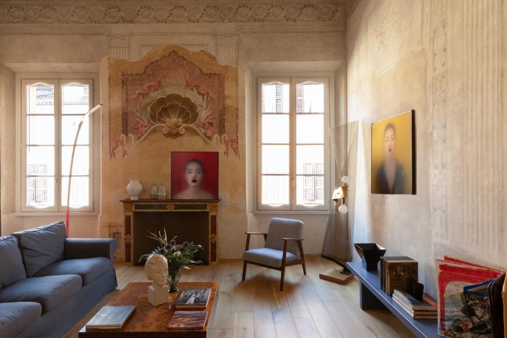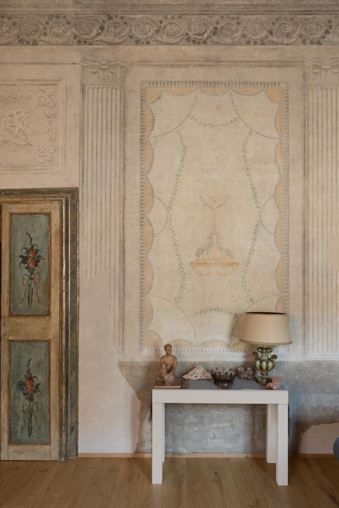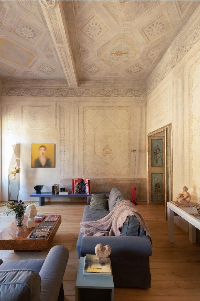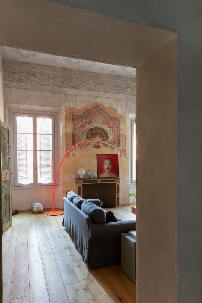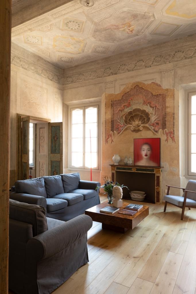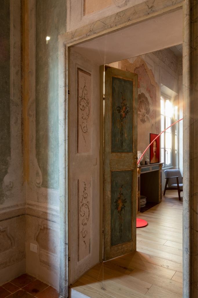 È un viaggio nel tempo Contrada San Domenico, appartamento al piano nobile di un palazzo del XVII secolo a Mantova, nel centro storico, restaurato da Francesca, responsabile comunicazione, e Luigi, giurista a Palazzo Chigi. Varcato l’ingresso, si resta subito affascinati dai magnifici affreschi portati alla luce durante il restauro, uno