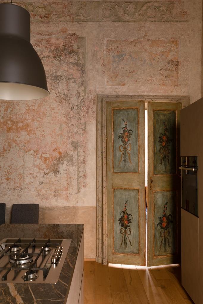 È un viaggio nel tempo Contrada San Domenico, appartamento al piano nobile di un palazzo del XVII secolo a Mantova, nel centro storico, restaurato da Francesca, responsabile comunicazione, e Luigi, giurista a Palazzo Chigi. Varcato l’ingresso, si resta subito affascinati dai magnifici affreschi portati alla luce durante il restauro, uno scrigno di testimonianze artistiche che vanno dal Seicento all’Ottocento.