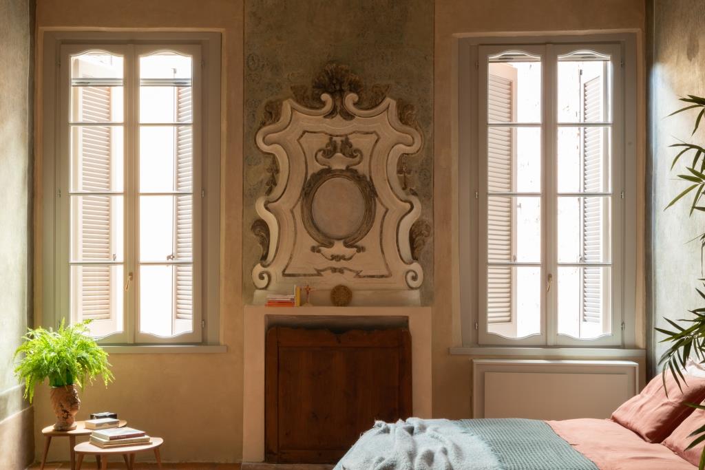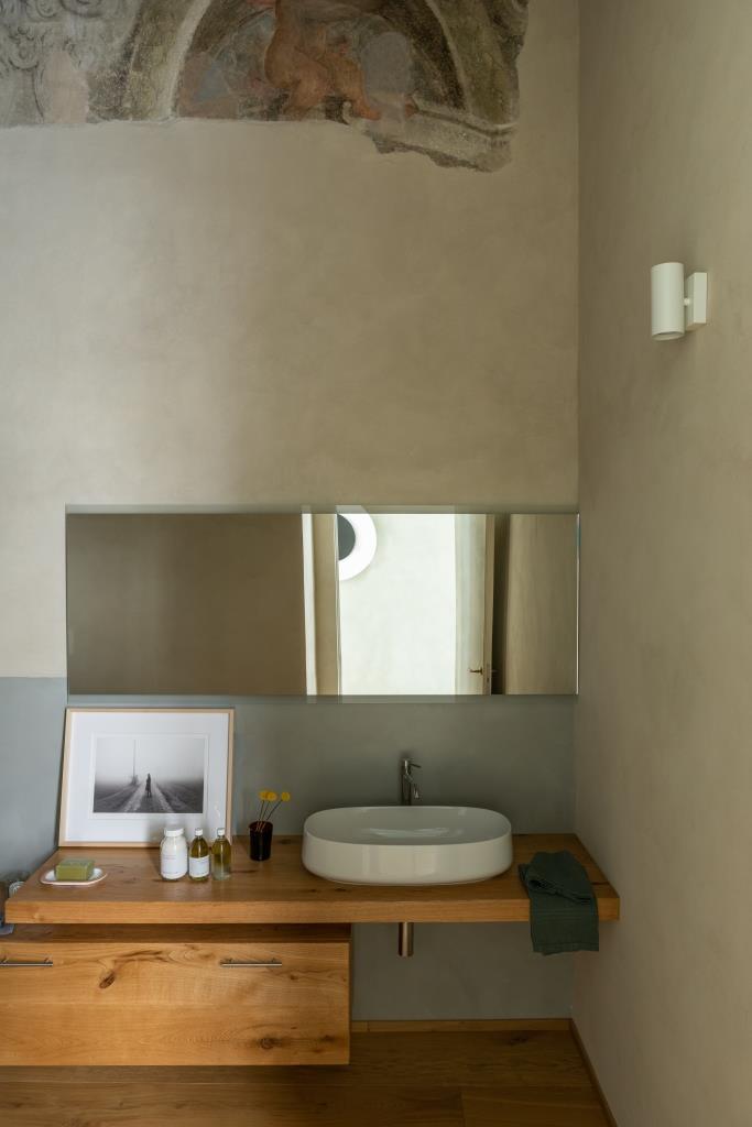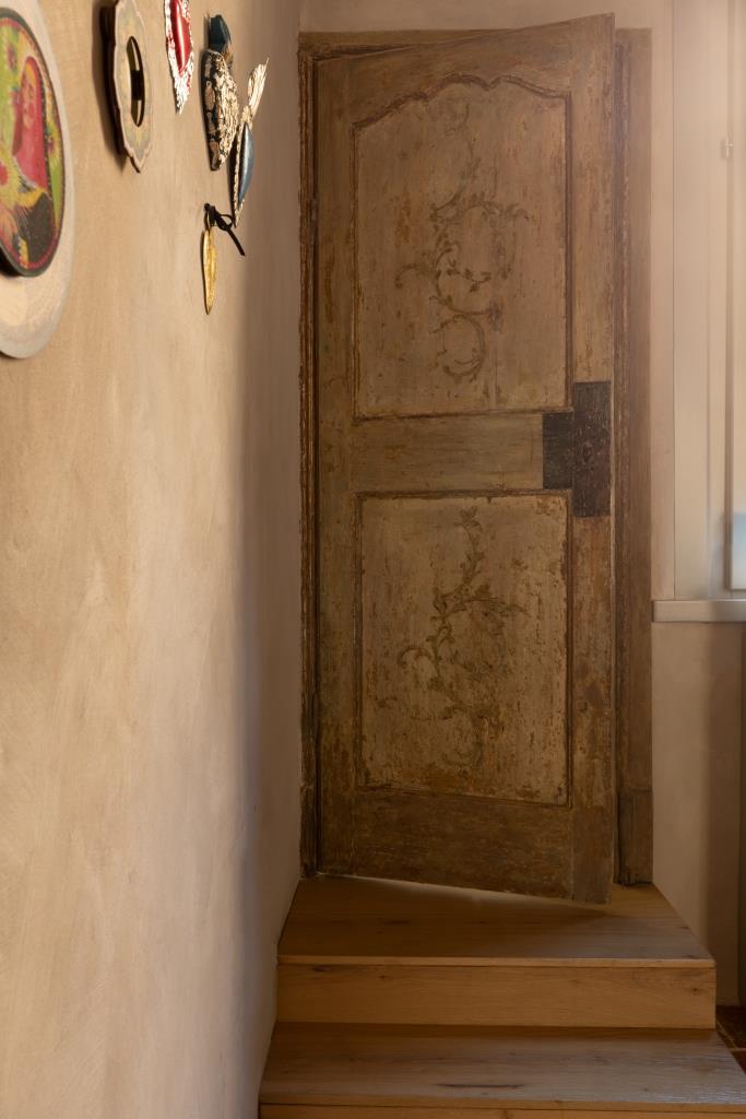 Mentre la camera da letto accoglie tracce di decorazioni risalenti alla seconda metà del XVII secolo e motivi ottocenteschi di evidente influenza austriaca, che ricordano quelli tipici delle residenze aristocratiche altoatesine. Per dare risalto a un ambiente così prezioso, nella scelta degli arredi si è puntato su linee semplici e pulite, mentre le lampade, passione di Luigi, sono state selezionate attingendo dai migliori nomi del design italiano, tra i quali spiccano Flos e Fontana Arte.
