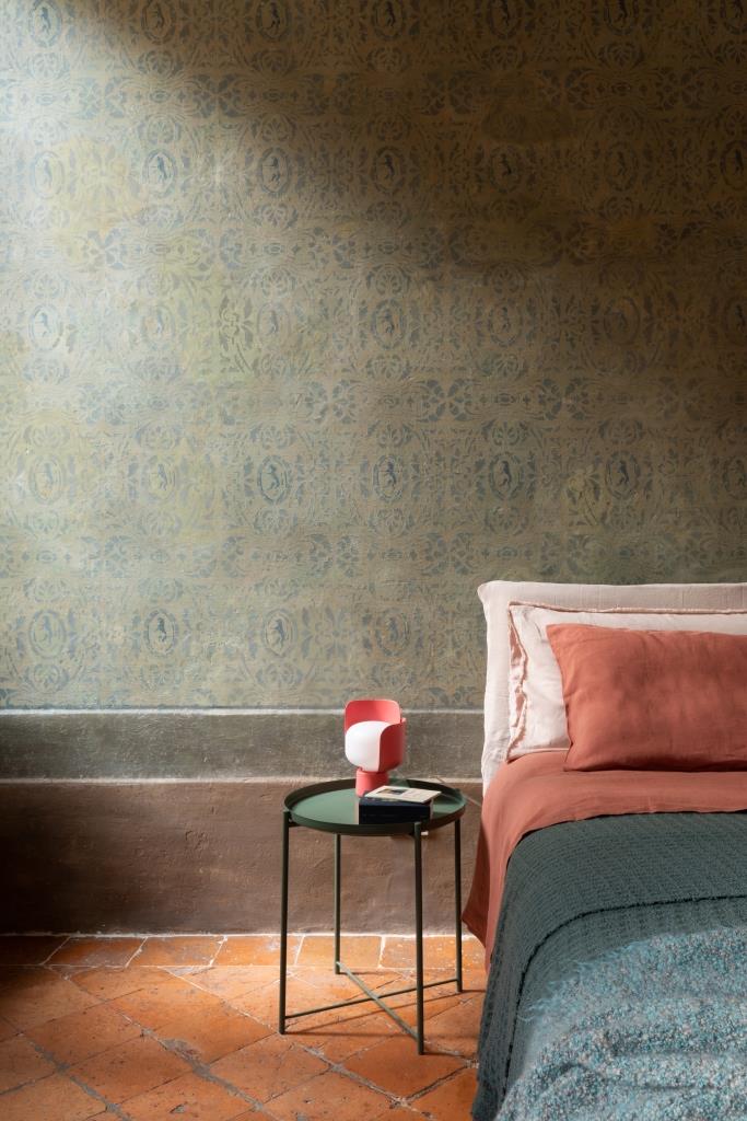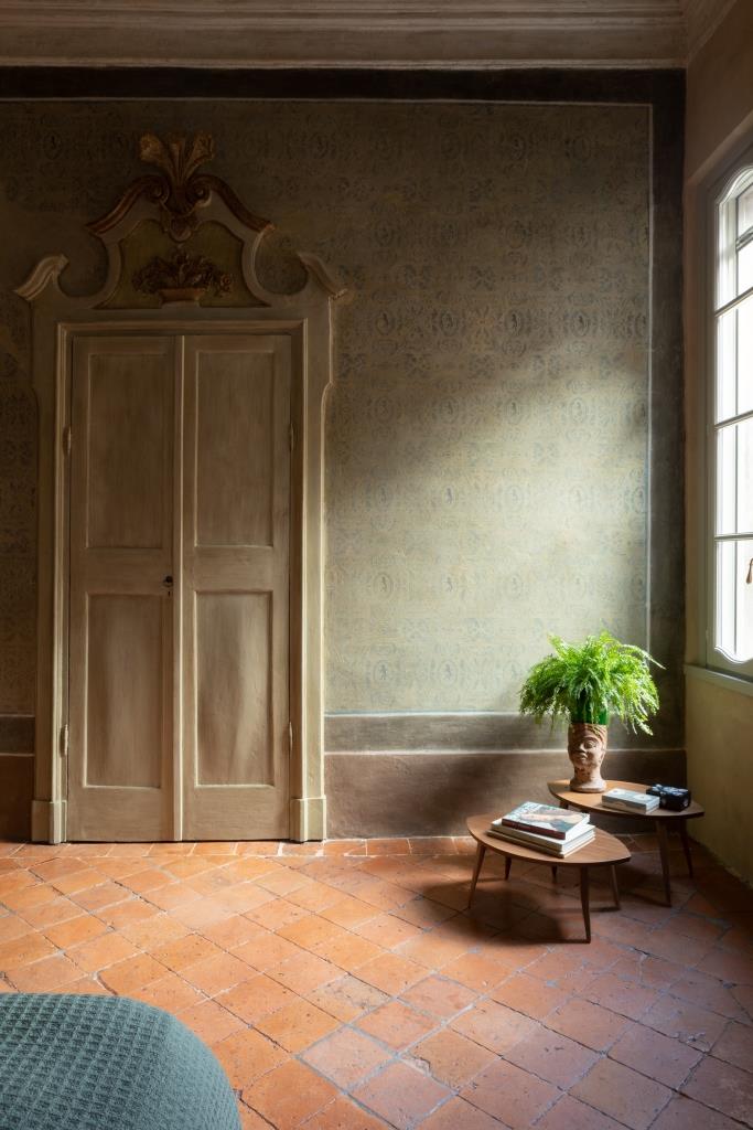Ma a catturare lo sguardo sono anche i tanti oggetti e souvenir raccolti dai proprietari nel corso di numerosi viaggi, un mix di suggestioni orientali e occidentali che vede convivere in armonia ex voto messicani, statuette azteche, tessuti tibetani, manufatti della Roma imperiale e vasi laccati birmani. “Francesca se ne è innamorata immediatamente – racconta Luigi -. I primi dettagli che ci colpirono furono la mensola del camino e i pavimenti in cotto settecentesco in quella che oggi è la camera matrimoniale”.