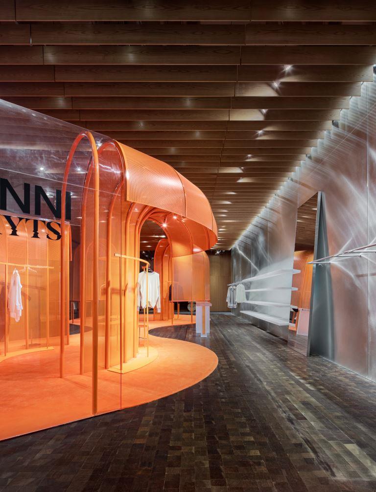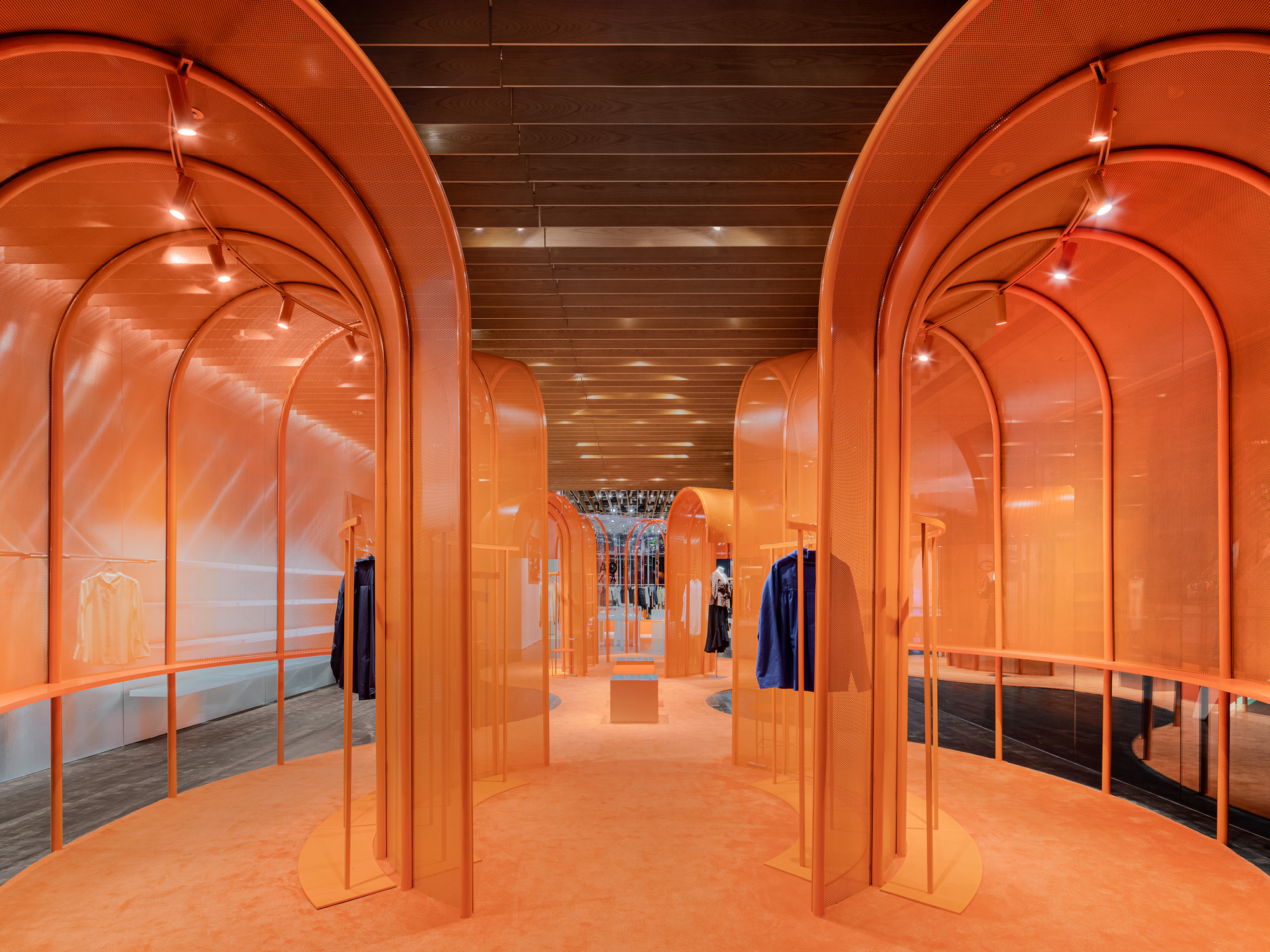 Di qui la suddivisione in sezioni ottenuta con moduli dalle forme tondeggianti e dalle linee ondulate, pensati come padiglioni dove esporre le collezioni dei brand ospitati dallo store.
