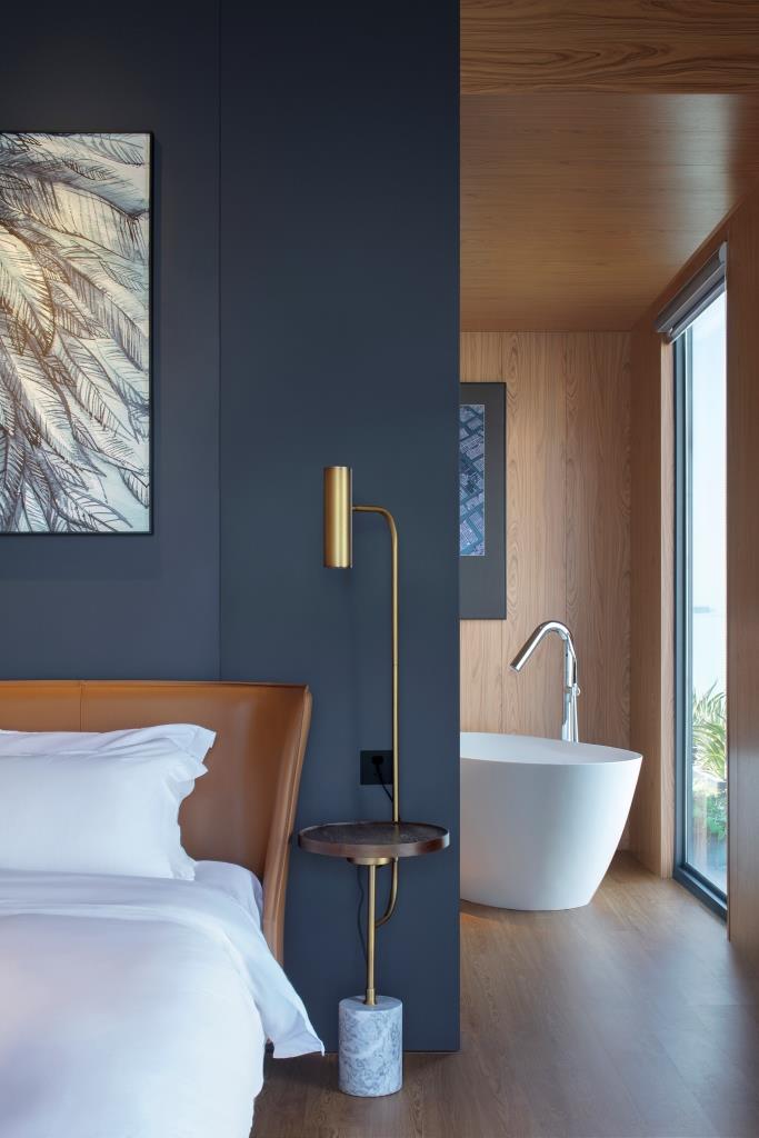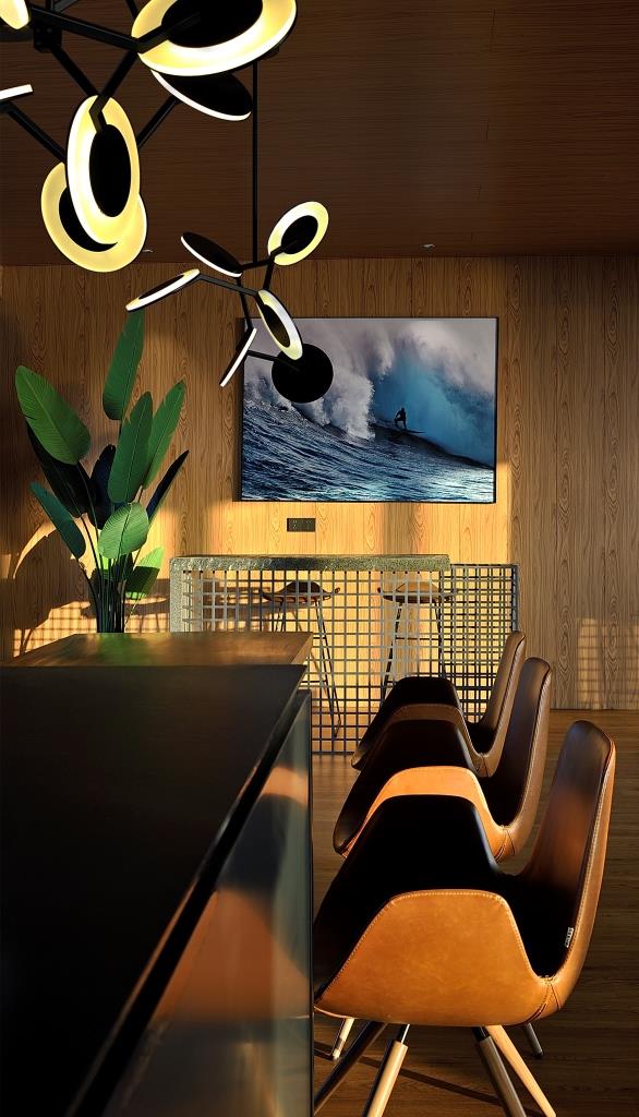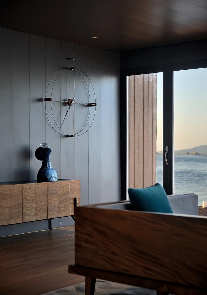 Il design degli interni, semplice ed essenziale, si declina intorno alle tonalità del legno evocando un’atmosfera calda e accogliente valorizzata dall’accento contemporaneo conferito dal rigore geometrico degli arredi.