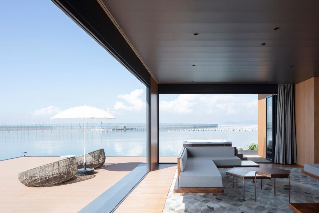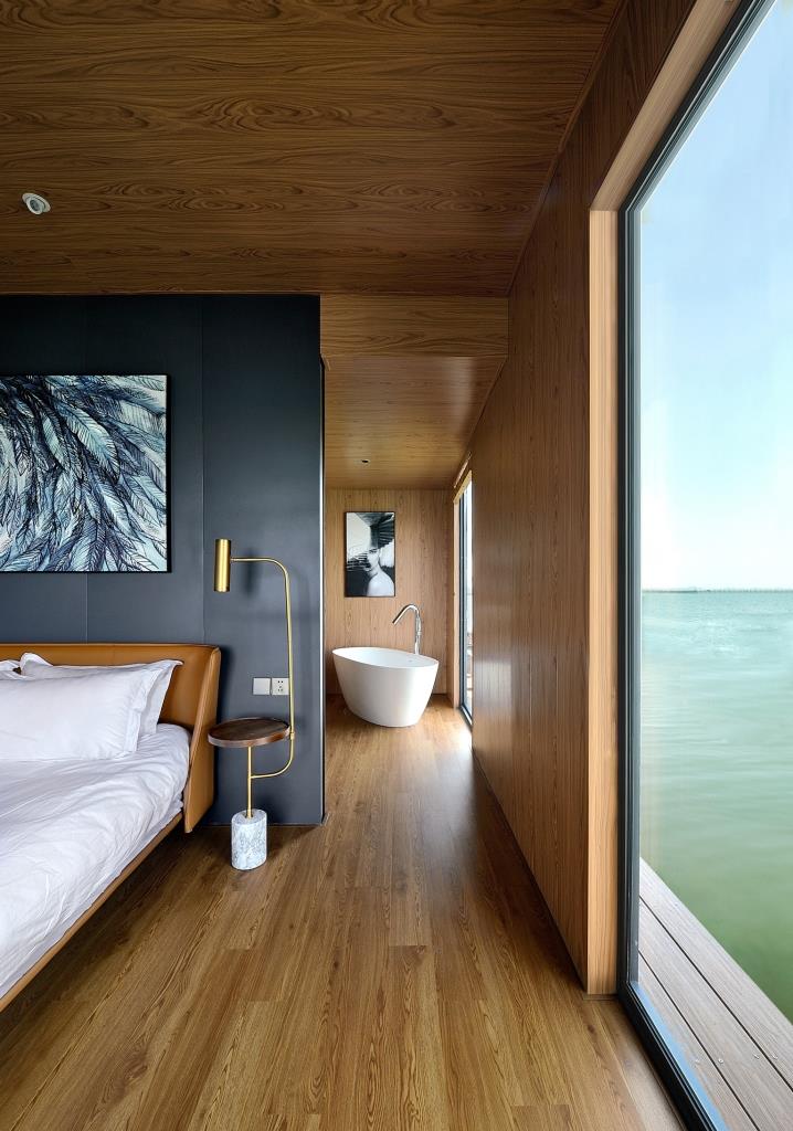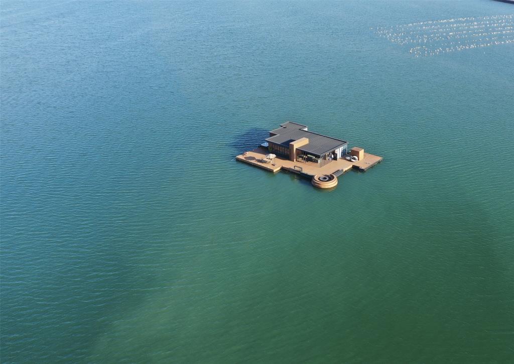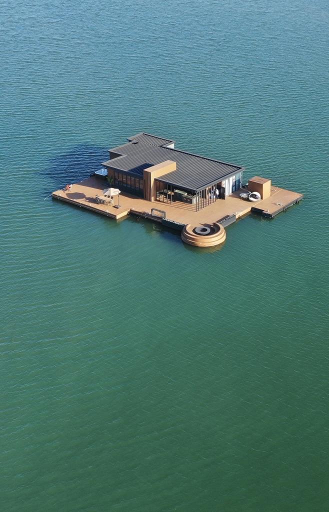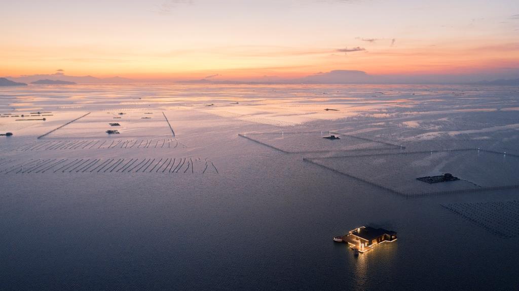 E’ Hi Sea, l’hotel galleggiante che accoglie gli ospiti nel braccio di mare che circonda l’isola di Dongshan, in Cina, a 500 metri dalla costa. Nello sviluppare questa ardita architettura i progettisti hanno dovuto considerare fattori naturali come le correnti oceaniche e i monsoni, calcolare con precisione la galleggiabilità della struttura e i necessari margini di sicurezza.