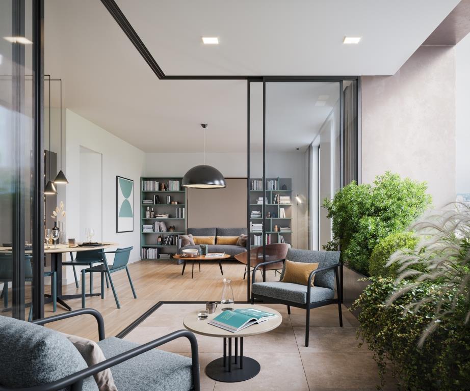 All’interno, ambienti ricercati, dettagli curati e soluzioni moderne. Caratteristiche che rendono GarofaloPaisiello un progetto unico, con soluzioni abitative che sono state oggetto di un accurato processo di ottimizzazione di spazi e distribuzioni, per assicurare massimo comfort e benessere. A partire da aria e luce: tutte le soluzioni residenziali sono infatti luminosissime, con doppio affaccio e grandi finestre a tutta altezza.