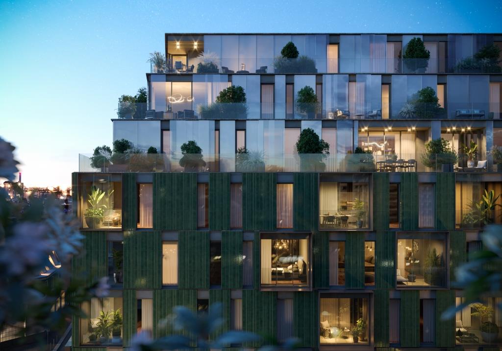 Un progetto residenziale nel quale estetica e sostenibilità trovano la loro sintesi nel materiale di facciata e dove le logge vetrate compongono un disegno dinamico, frutto del gioco di riflessi tra la trasparenza dei cristalli e la lucentezza smeraldina del rivestimento ceramico.