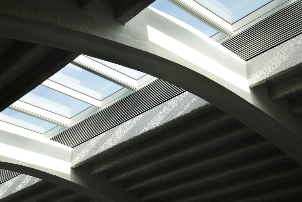 A questo scopo l’intervento ha previsto la suddivisione del volume centrale in due livelli la cui illuminazione è affidata, al piano terra, alle gallerie laterali trasformate in atri aperti per permettere il passaggio della luce naturale, mentre al livello superiore quest’ultima filtra da una serie di nuovi lucernari collocati lungo l’intera lunghezza della sala.