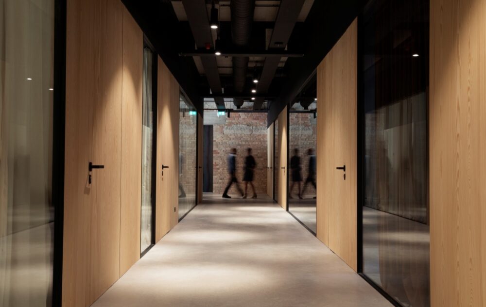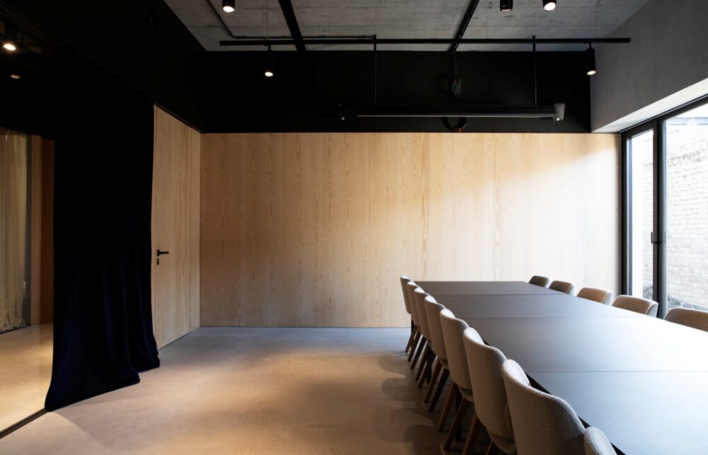 La sala cinematografica, in particolare, sviluppata a doppia altezza su nove metri nella parte centrale e tre metri nelle gallerie laterali, ha rappresentato una complessa sfida progettuale, che ha avuto il suo baricentro nella riconversione di questo spazio privo di luce naturale in un ambiente office accogliente e funzionale.
