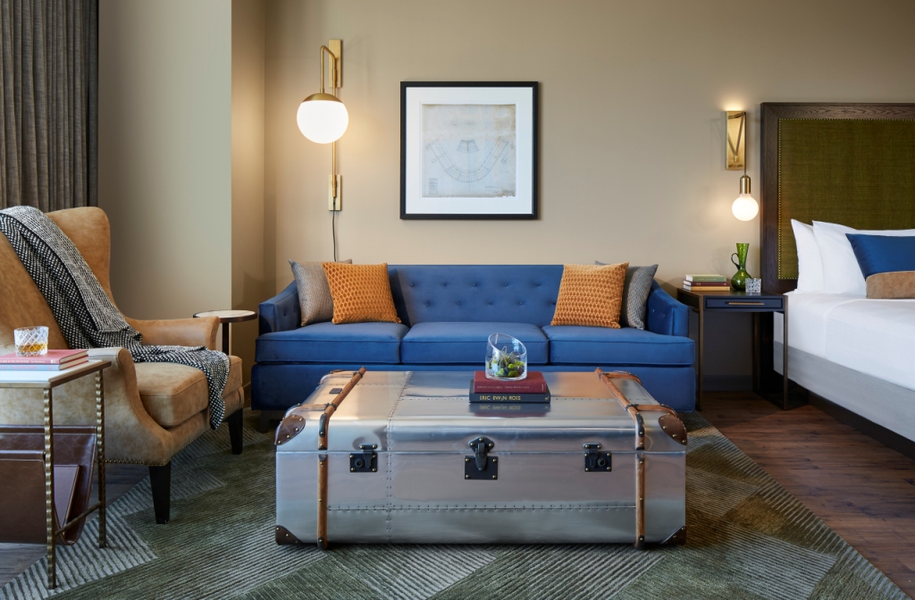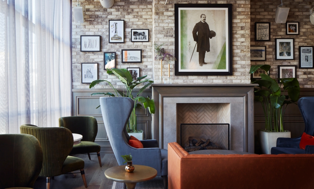 Mattoni a vista, boiserie e pavimenti in legno, impianti a soffitto, vecchi bauli, divani Chester e lampade che rievocano i lampioni stradali: l’affascinante retrò dell’Hotel Zachary è un progetto di Studio K Creative e Stantec Architecture