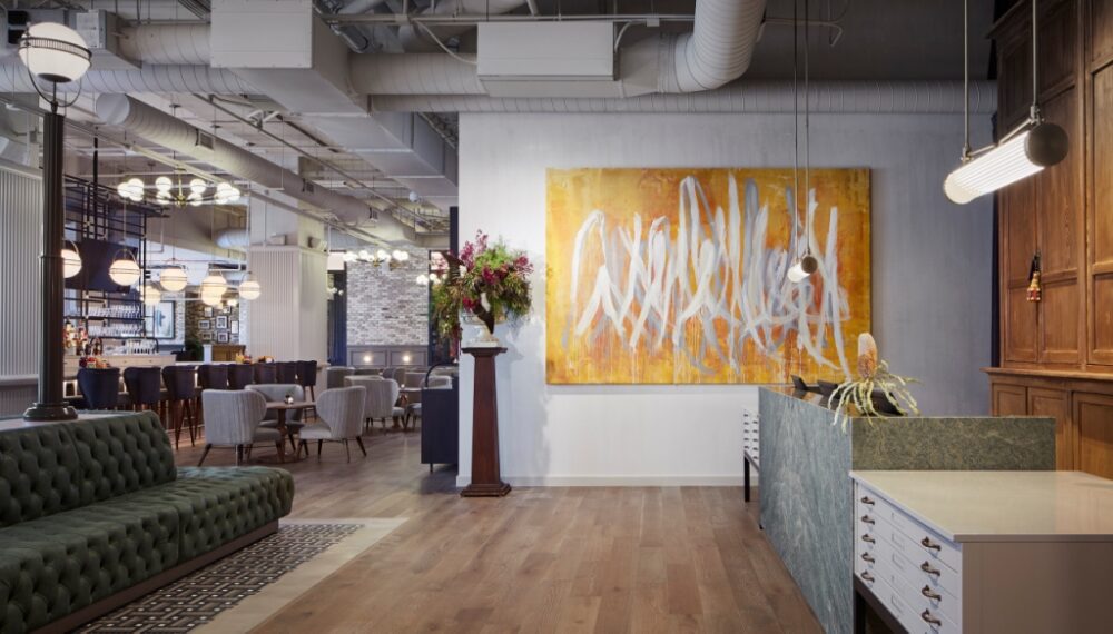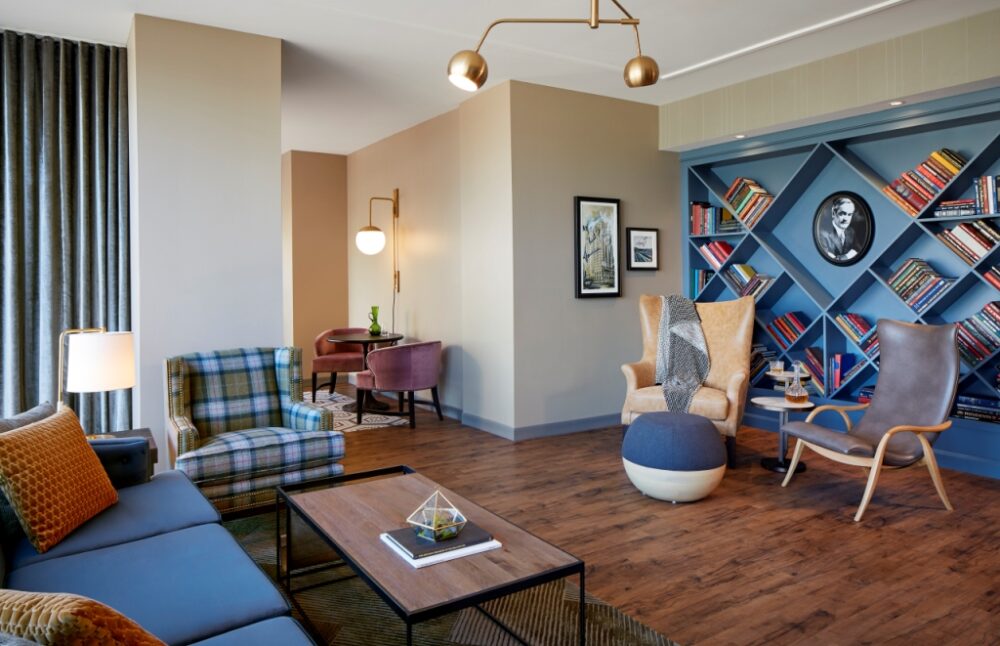 Mattoni a vista, boiserie e pavimenti in legno, impianti a soffitto, vecchi bauli, divani Chester e lampade che rievocano i lampioni stradali: l’affascinante retrò dell’Hotel Zachary è un progetto di Studio K Creative e Stantec Architecture