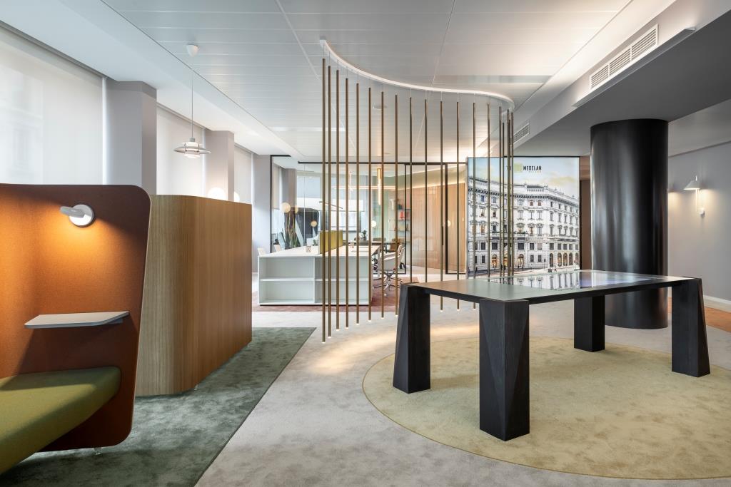 Milano Contract District debutta nel settore ufficio e porta nel capoluogo lombardo una prima rappresentazione di “resimercial design”, dando vita a forme ibride di workspace, con mood e funzioni d’uso fino a oggi inedite. Nasce così, da queste premesse, l’innovativo office mockup di The Medelan, prestigioso complesso immobiliare che si trova nella centralissima piazza Cordusio a Milano, oggetto di una riqualificazione del valore di 100 mln di euro firmata dallo Studio GLA su iniziativa di DeA Capital Real Estate SGR. Un progetto che darà vita a un esclusivo complesso a uso misto, nel quale convivranno funzioni retail, office e food & beverage. Il tutto arricchito da uno straordinario e suggestivo rooftop con vista panoramica sulla città.