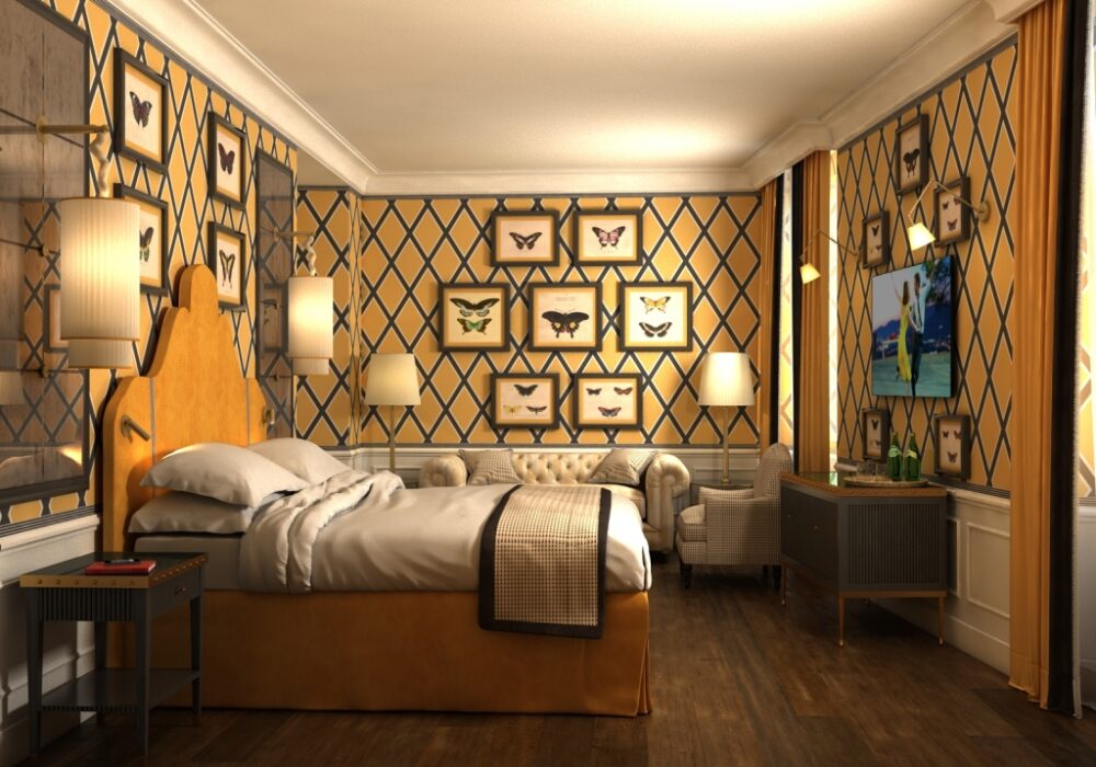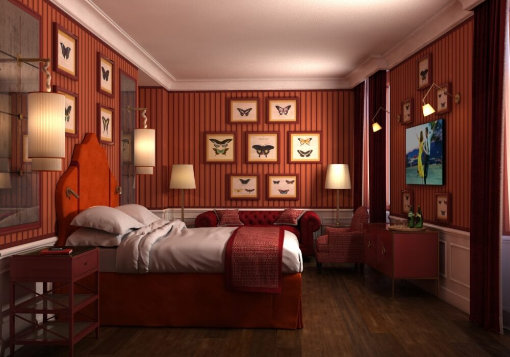 L’hotel si caratterizza nelle sue aree per l’originalità negli elementi decorativi e per altri sorprendenti e singolari dettagli, evocativi di una natura tranquillizzante e stilizzata, dalla pietra alle farfalle in volo, che avvolge nel comfort e in una storicità rispettata e leggera gli ospiti di questo albergo, che aprirà i battenti a Firenze il prossimo ottobre.