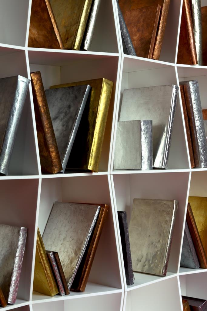 Tra i pezzi di design d’autore – tra i quali la lampada a piantana di Nemo modello AM2C design Franco Albini, F. Helg, A. Piva, M. Albini, la poltroncina Vitra modello Soft Pad Charles e Ray Eames, la libreria Wevi disegnata da Giuseppe Bavuso per Alivar e il divanetto di Cassina modello 414 Cab firmato da Mario Bellini – spiccano numerose opere site specific realizzate da Tacchinardi. Tra queste un portavaso in lamiera di bronzo, un foglio arrotolato satinato a mano a forma di cono, e una speciale installazione denominata Libri composta da quattrocento volumi realizzati in vari metalli e dimensioni.