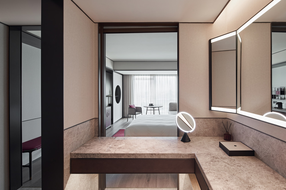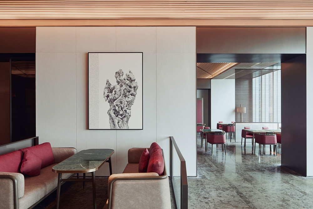 Dotato di 146 camere e circondato dai moderni edifici del Qianjiang CBD, vivace quartiere commerciale, il nuovo albergo espone un lusso elegante e raffinato proponendosi al tempo stesso come un’oasi di pace. Questo sin dall’ingresso e dalla hall, dove il colpo d’occhio restituisce un senso di rigore essenziale intrecciato con tocchi di arte contemporanea e suggestioni orientali.