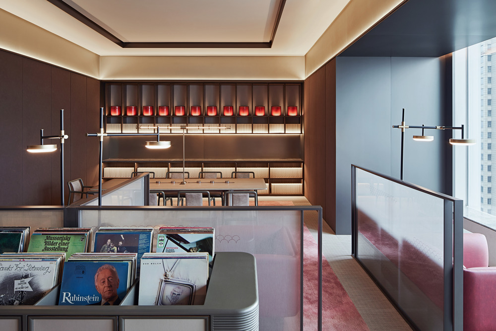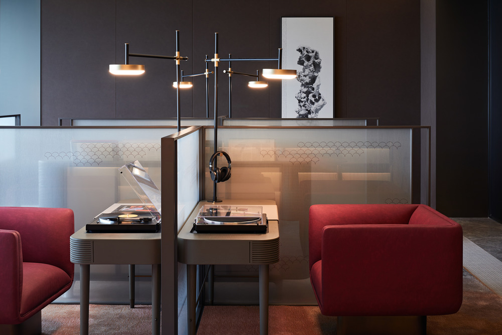 Il tutto in una struttura completa di palestra, bar, sala da tè, ristorante e sale conferenze perfetta per il mondo del business, ma con un’impostazione olistica che tende a incrociare lavoro e tempo libero e che si esprime soprattutto nel Vinyl Record Bar, salotto con collezione di vinili e giradischi a disposizione dei clienti.