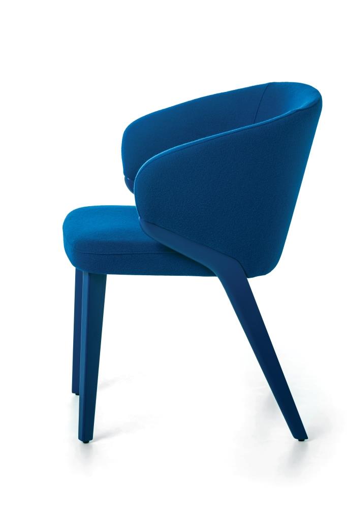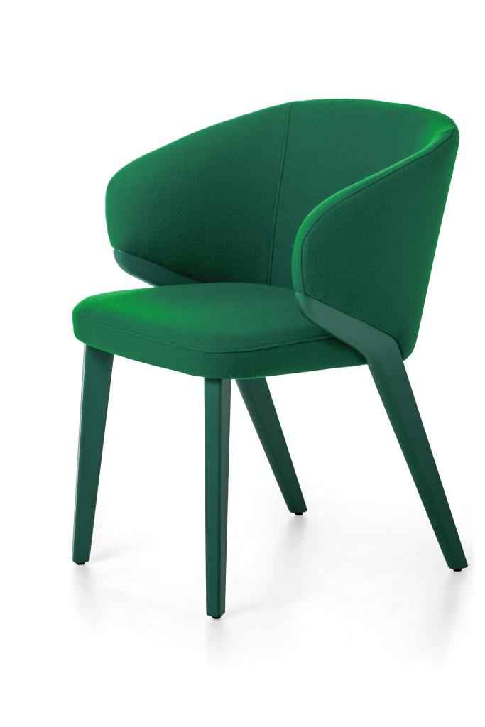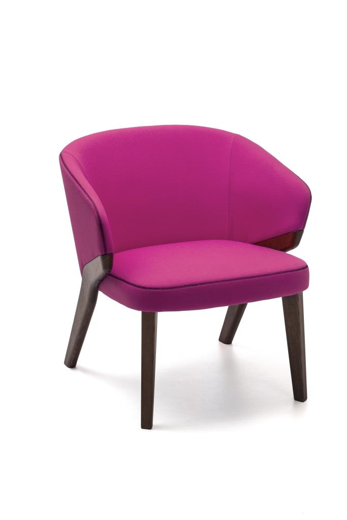 Nora – La collezione firmata da Michael Schmidt è composta da una poltroncina, uno sgabello e da una poltrona lounge in cui la struttura, in legno massello, diventa il segno identitario del suo design. Le gambe posteriori, in frassino naturale, tinto o laccato opaco, si estendono infatti sino a definire il profilo inferiore del bracciolo, con una duplice valenza decorativa e funzionale. La scocca, imbottita e rivestita in pelle o tessuto, è impreziosita da cuciture tono su tono o a contrasto.