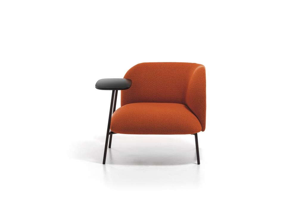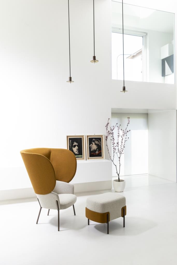 WAM – La famiglia di prodotti disegnata da Marco Zito comprende sedute lounge, sofa, sgabelli panche e pouf, caratterizzati da una base in metallo dall’aspetto leggero, che accoglie gli ampi volumi degli imbottiti. L’accostamento armonioso fra la sottile struttura, che può essere realizzata in finitura nera o bronzo spazzolato, e la scocca, avvolgente ed ergonomica, è l’elemento estetico che caratterizza la collezione, completata anche da un side table.