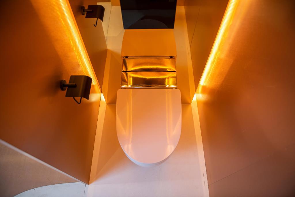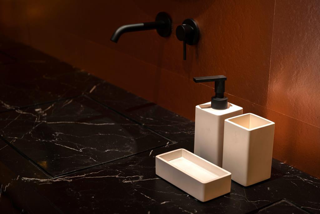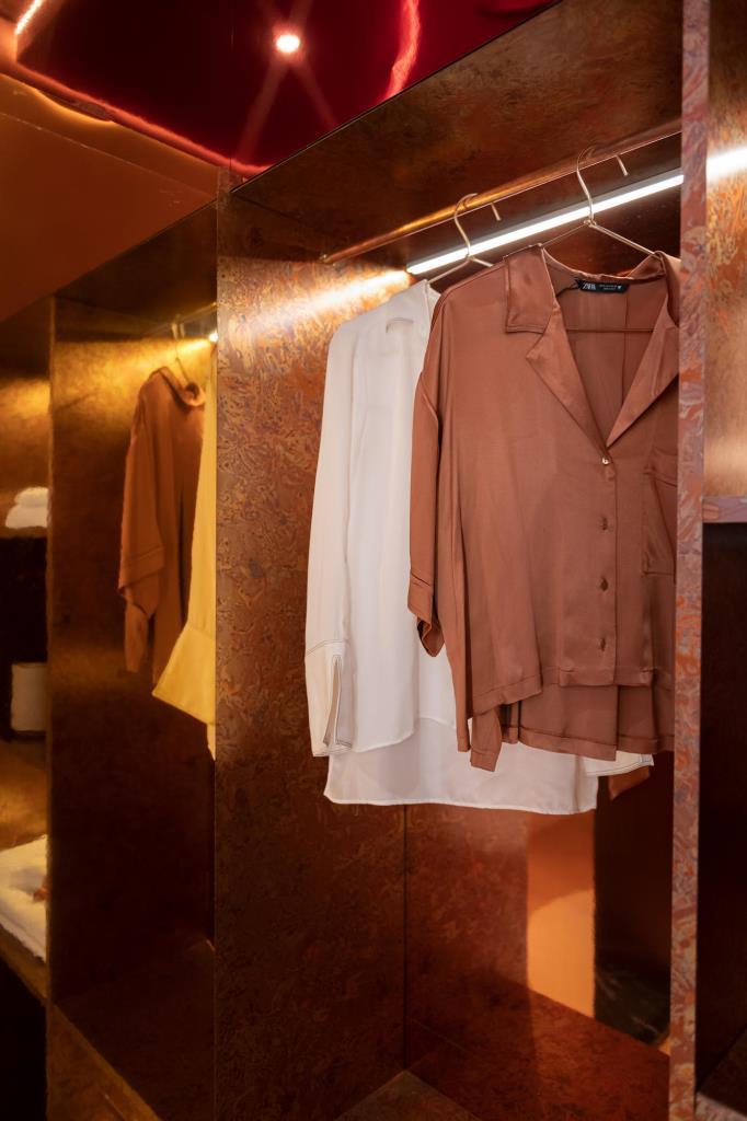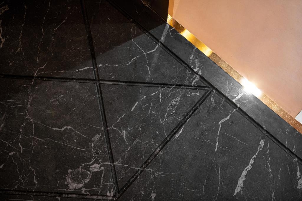 La seconda zona comprende bagno con lavabo in pietra naturale dall’aspetto elegante e senza tempo, specchi ellittici, cabina doccia dominata dal marmo, spogliatoio con pannelli metallici. Fondamentale, nella definizione del concept, l’illuminazione: morbida e regolabile grazie a soluzioni domotiche all’avanguardia.
