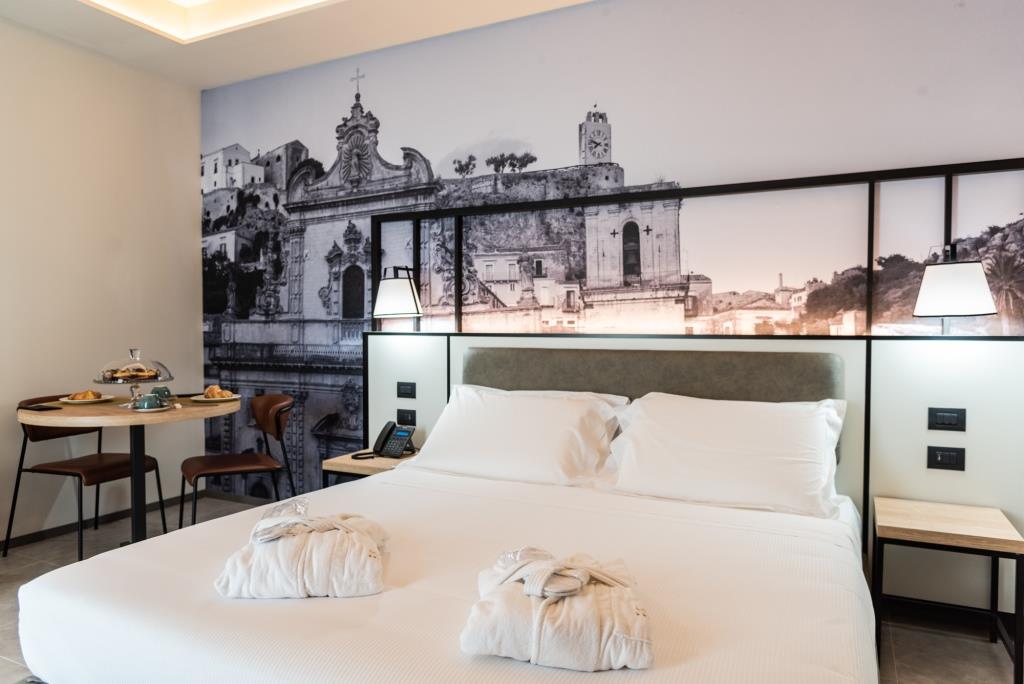 Il legame con la città è presente nei riferimenti decorativi ispirati alle architetture di Modica, che ritroviamo stilizzati nelle camere e in generale negli elementi decorativi della struttura. Nell’interior design delle camere ricorre tutto il tipico calore dell’ospitalità isolana, interpretato attraverso una accurata selezione di materiali, accostamenti cromatici e stilistici.