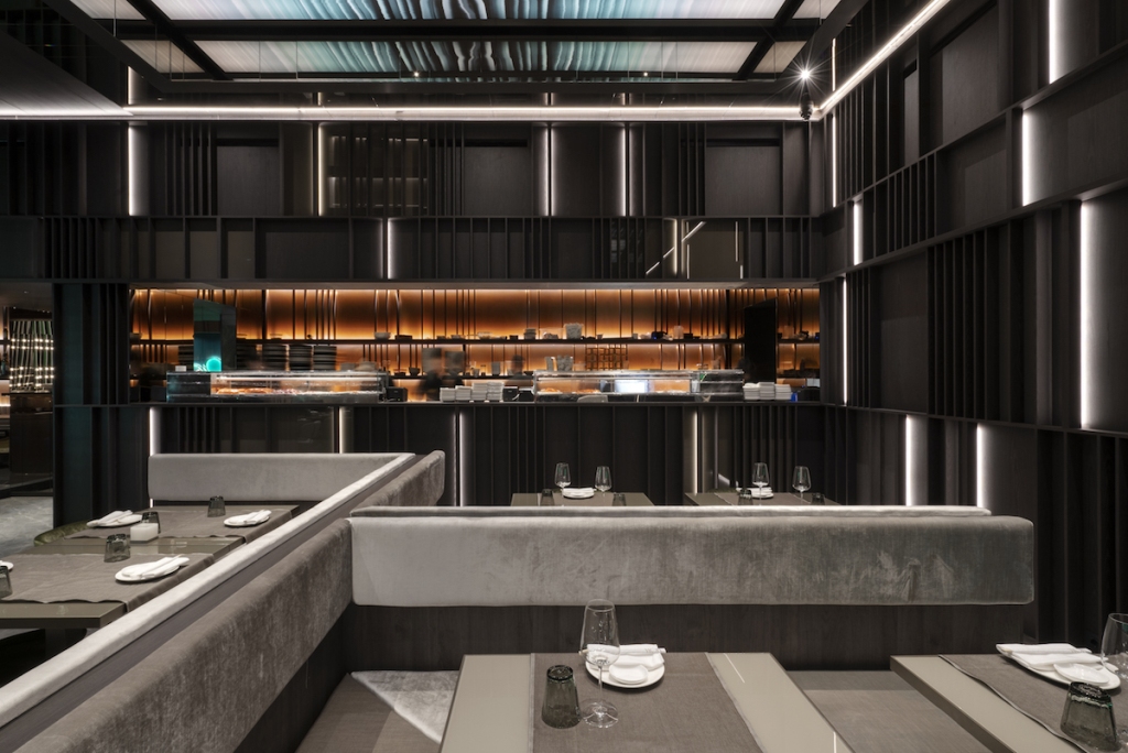 Al Moya, nuovo ristorante asiatico a Mariano Comense, stringhe di luce, fluidità scultoree e tonalità boreali definiscono un nuovo livello di esperienza, tra spazio e cibo