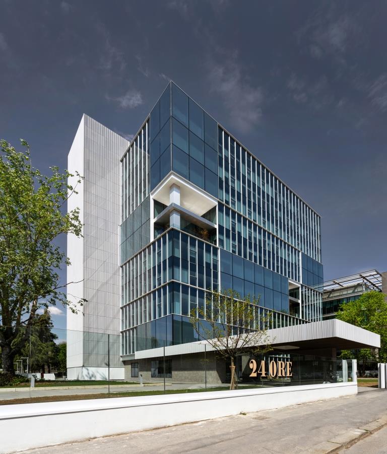 Il secondo progetto è Urban Cube, la nuova sede milanese del Gruppo 24 Ore nel cuore del quartiere Bicocca. Un edificio di 15.500 metri quadrati nato da un progetto di riqualificazione che si concretizza in un’architettura simbolo di rigenerazione urbana in chiave hi-tech e green, improntata alle attuali esigenze di risparmio energetico e di basso impatto ambientale. Il progetto è dello studio milanese Park Associati, mentre l’interior design è stato sviluppato da DEGW | Lombardini22.