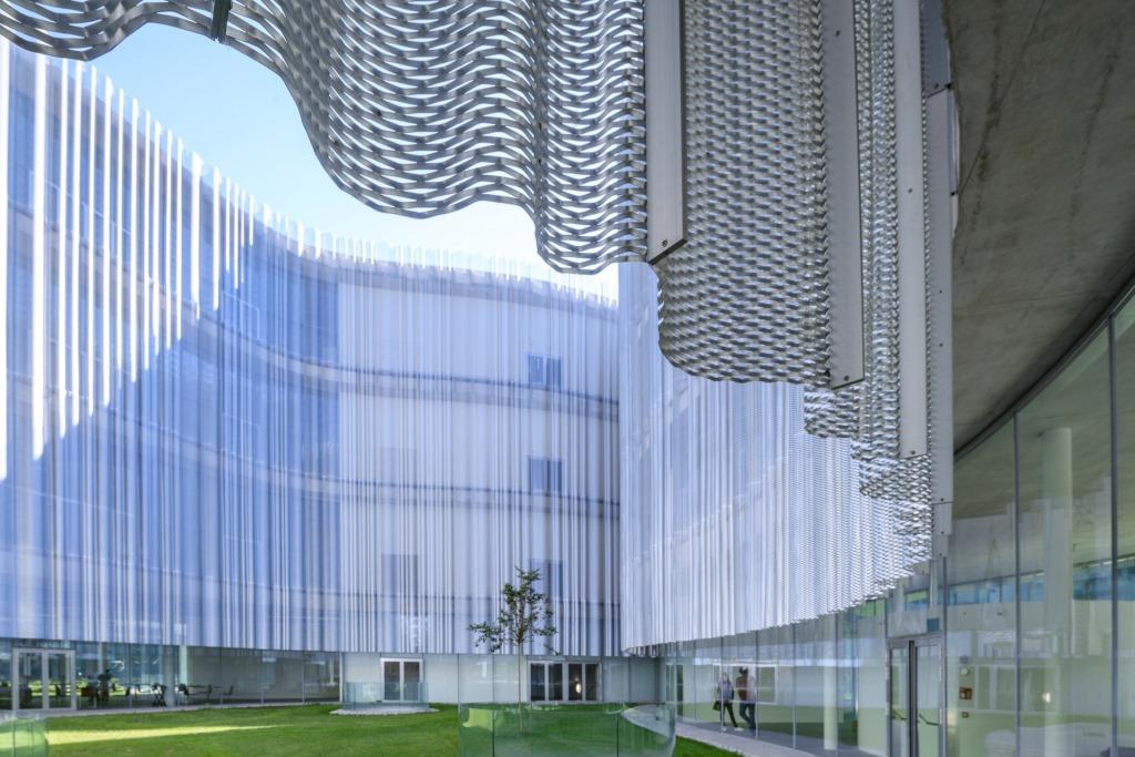 Qui, le facciate degli edifici, dalle linee sinuose, sono caratterizzate da trasparenze che accentuano il concetto di apertura e generano una sensazione di fluidità tra gli spazi interni ed esterni. Il vetro, materiale protagonista, è protetto da superfici metalliche con un effetto visivo di leggerezza e sospensione. Gli edifici disegnano delle corti al centro, formando un ambiente naturale, mentre esternamente si affacciano verso la città e il parco.
