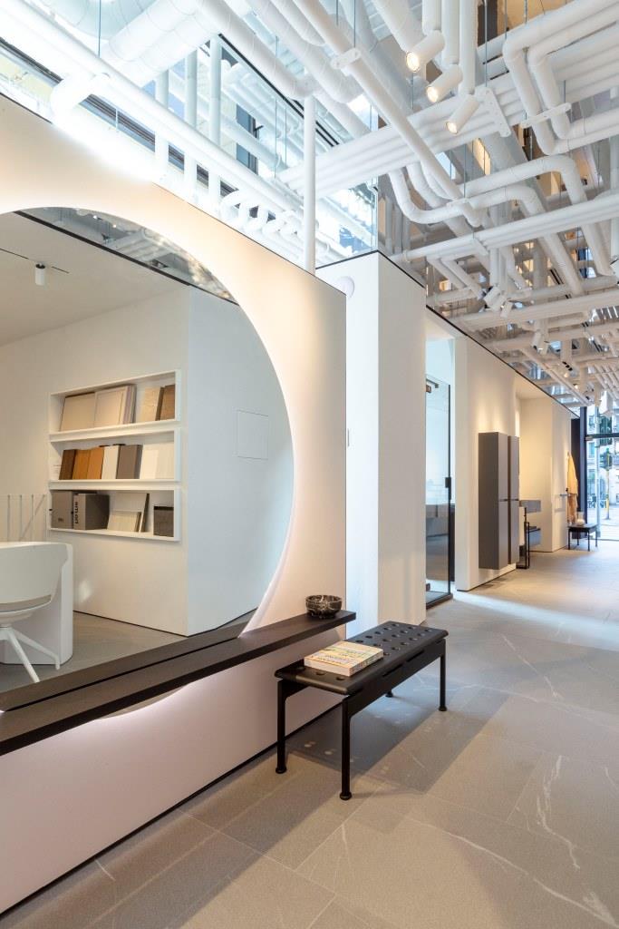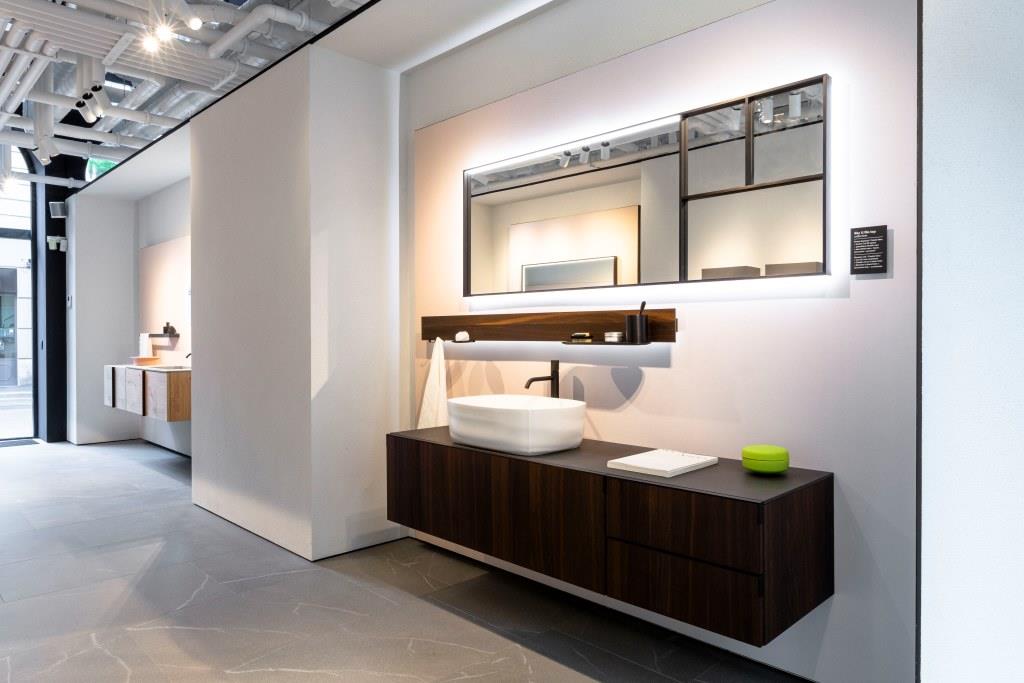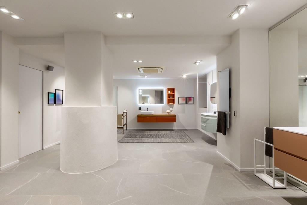 Si tratta di grandi cornici appoggiate alle pareti e posizionate al centro dello spazio, il cui profilo – a ogni successivo aggiornamento delle composizioni di prodotto – è riconfigurabile in coordinamento con le rispettive finiture. E anche gli sfondi potranno essere aggiornati per enfatizzare la scenografia. Il format espositivo è, infatti, studiato per trasmettere il know-how progettuale e l’originalità dei prodotti fortemente caratterizzati da design e innovazione, attraverso un percorso che mette in risalto ogni ambientazione grazie a scelte cromatiche e materiche ad hoc.