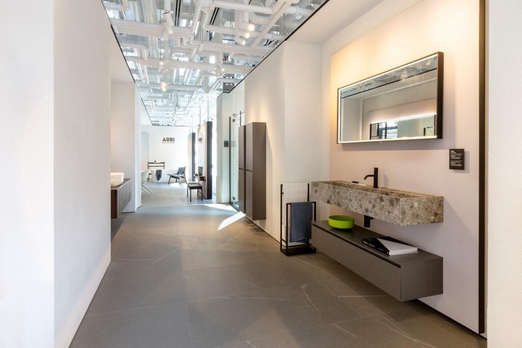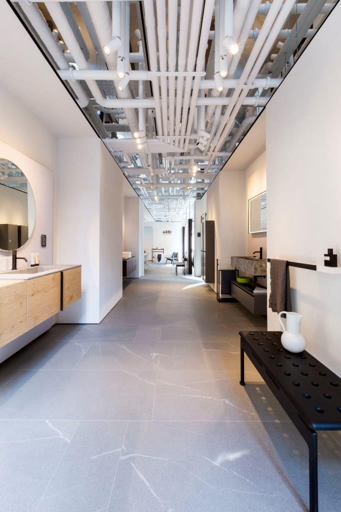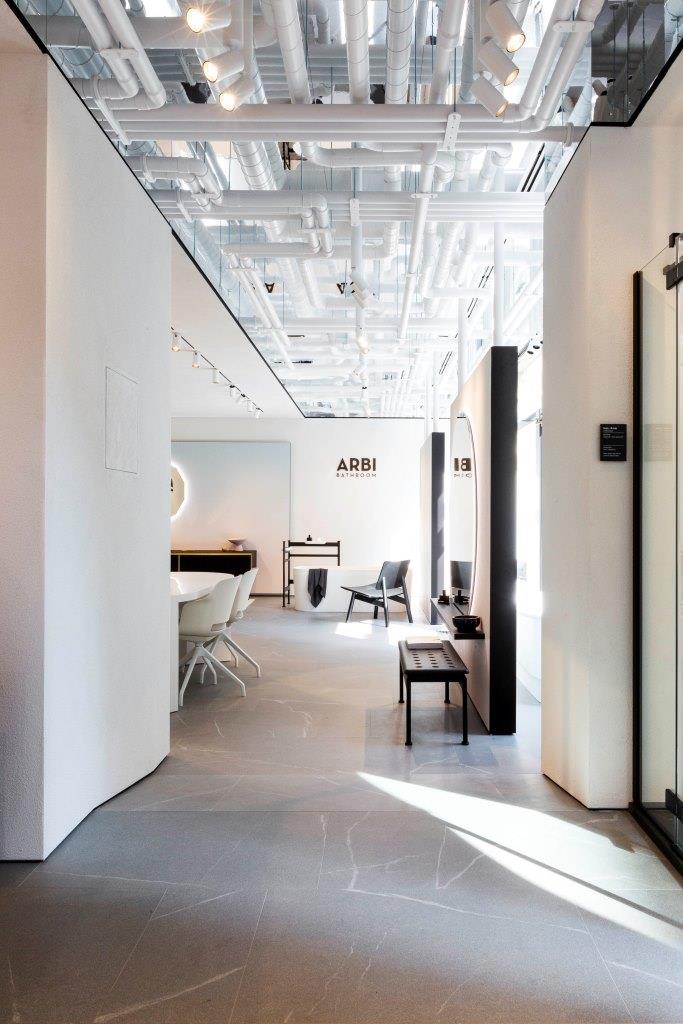 Il nuovo concept curato dagli architetti Fabio Calvi e Paolo Brambilla trova ispirazione nelle gallerie di arte contemporanea nate nei loft di New York negli Anni 70, grandi spazi neutri che accoglievano di volta in volta nuove opere e installazioni. Gli ambienti dello showroom Arbi sono stati così ripuliti, resi più luminosi e ampi, e valorizzati con l’inserimento di nuovi elementi espositivi, essenza del progetto stesso.