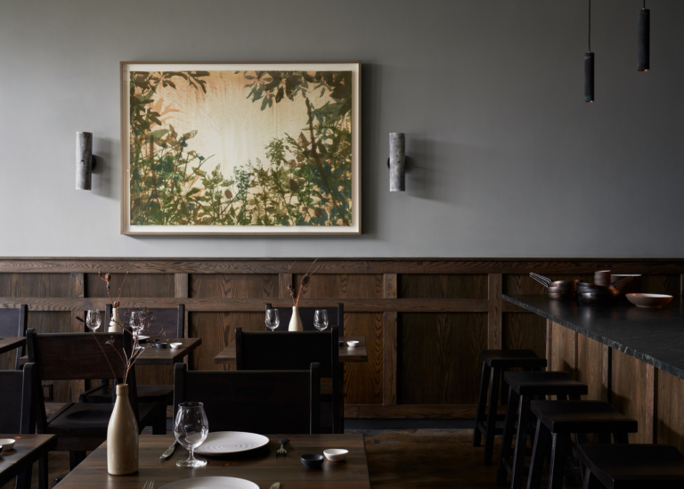 Proprio l’illuminazione è uno degli ingredienti protagonisti delle atmosfere del Samara, affidata a sospensioni realizzate su disegno da Mutuus Studio che diffondono una luce d’ambiente morbida e soffusa. Due corpi illuminanti di forma cilindrica realizzati in rame zigrinato, Cinder e Ember, forniscono luce diretta al banco cucina, mentre l’illuminazione di tavoli e sedute può essere calibrata a piacere dalle applique orientabili Mallet integrate da ulteriori punti luce rivestiti in tessuto.