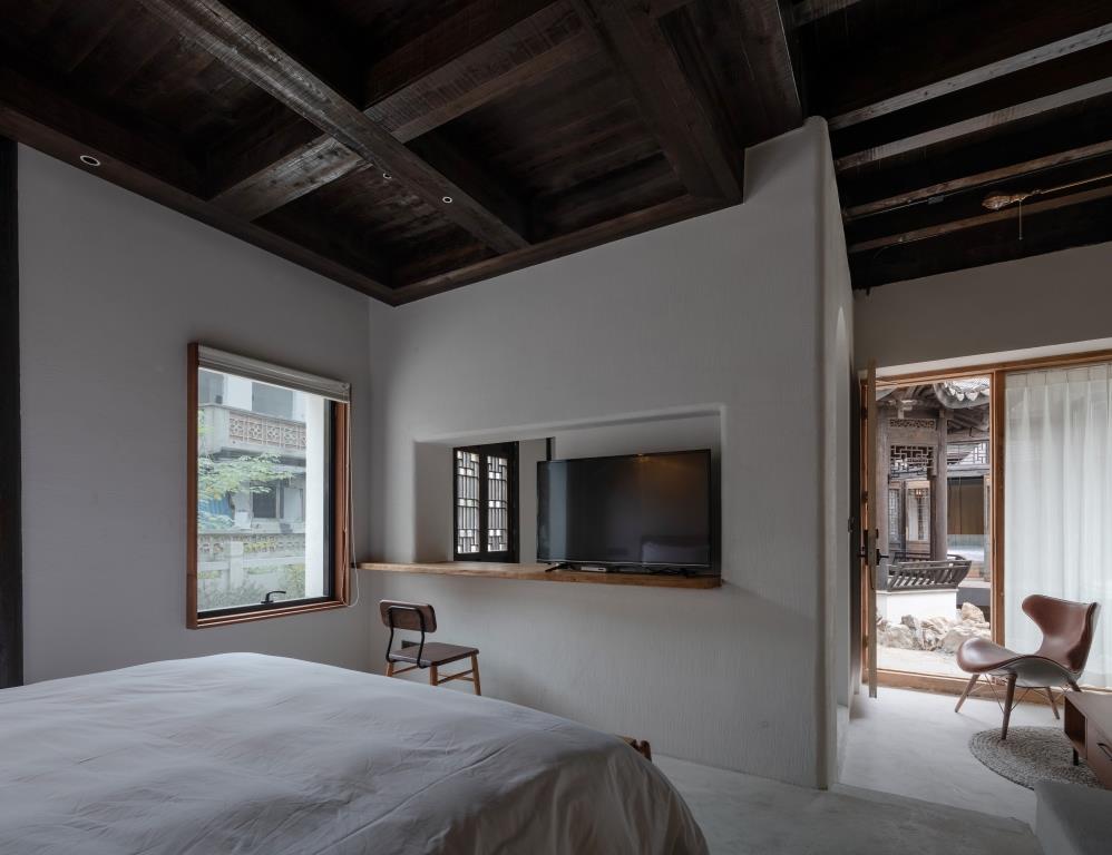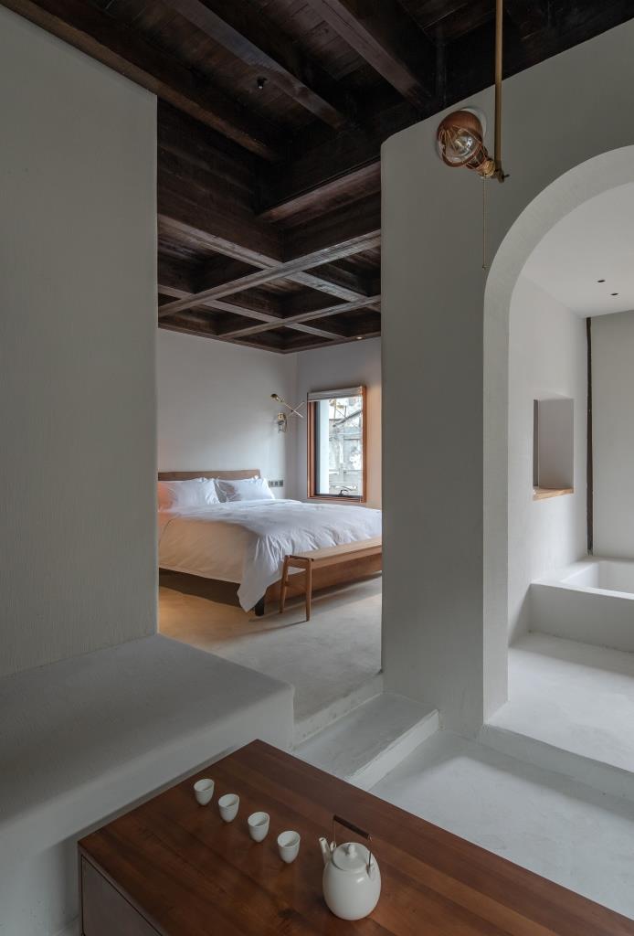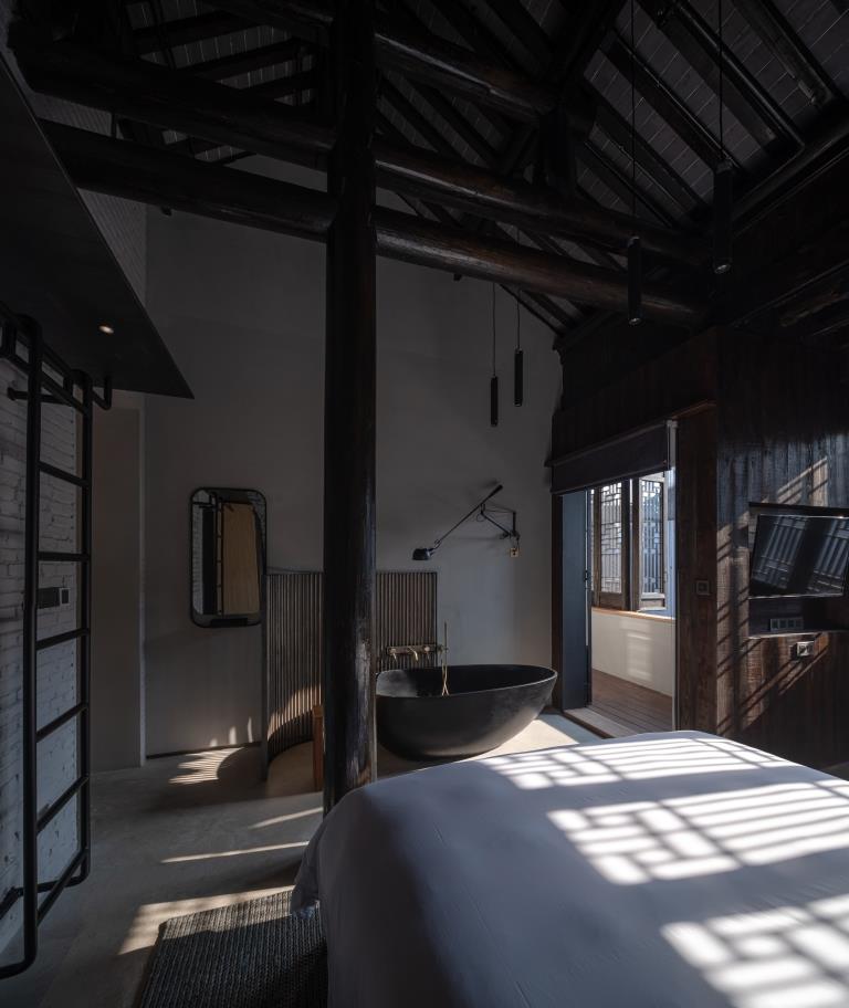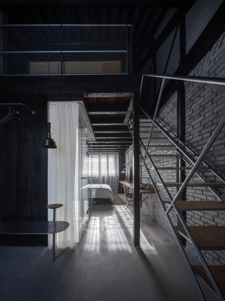 Benzhe non si è limitato a scegliere per le camere un unico carattere: Su e Du sono retrò e nostalgiche; Ru e Yang sono duplex che ricordano i loft – in Yang è stata addirittura ricavata un’area di sosta sospesa simile a una rete – Fan e Hong sono in stile industrial. Pur essendo stata impiegata un’ampia varietà di materiali sia restaurati che introdotti ex novo – intonaco, pietra, mattoni verniciati e calcestruzzo per le murature, oltre a legno, vetro, acciaio – l’impressione generale è di grande armonia e coerenza. Un palinsesto ben riuscito dove i contenuti più recenti si sovrappongono a quelli precedenti senza cancellarli.