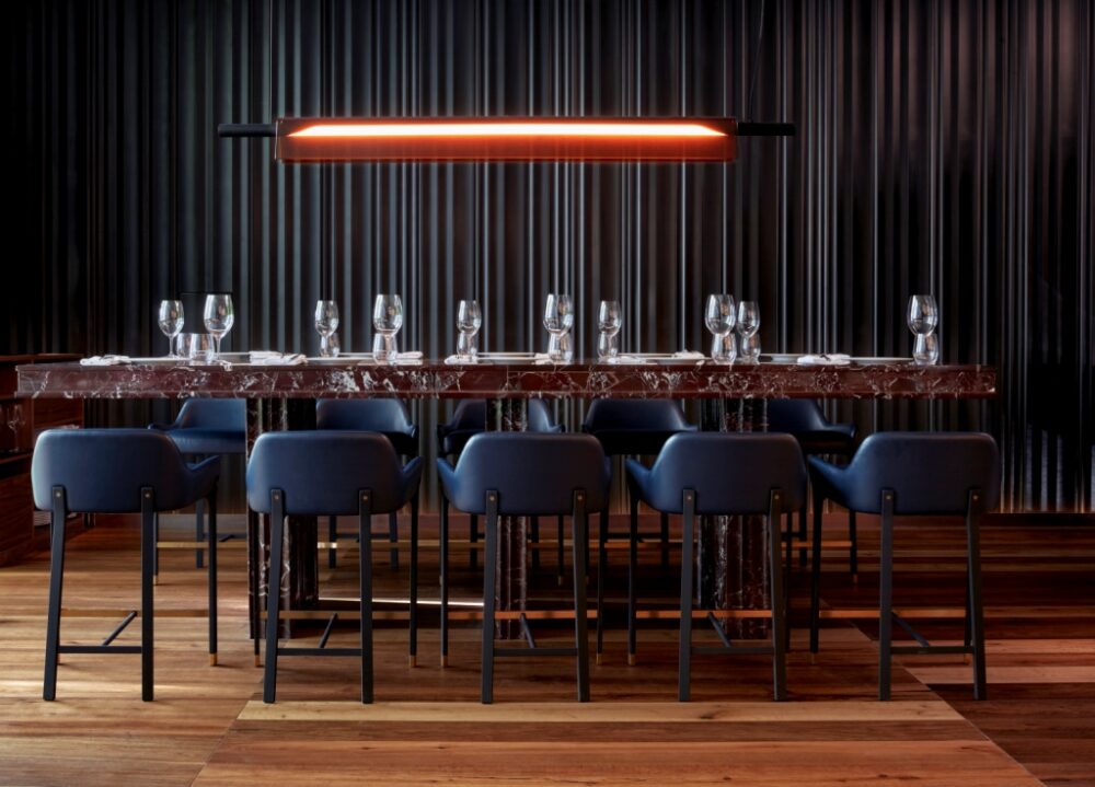 Seguendo il concept di un viaggio attraverso i paesaggi, Baranowitz + Kronenberg hanno dato vita a una pluralità di ambienti che richiamano i due volti di Barcellona, marina e montuosa al tempo stesso. Da un lato quindi la luminosa reception, con i suoi pavimenti in rovere, il tavolo da biliardo in marmo di Carrara e la rotondità delle luci a sospensione di Bocci, e dall’altro i toni terrosi del ristorante Mr Porter che, tra grandi plafoniere circolari, panche imbottite e mobili in noce scuro, avvolgono il visitatore in un’atmosfera intrigante e intima.