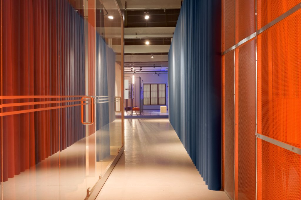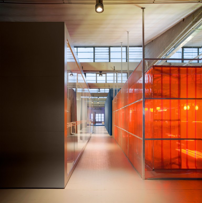 Pensato come un contenitore dinamico e flessibile, l’hub è caratterizzato da volumi con caratteristiche e funzioni diverse che si alternano in un gioco di texture, colori e materiali che prendono forma e cambia­no veste attraverso un sapiente uso della luce. Uno spazio dove ogni elemento dia­loga con gli altri e con l’architettura industriale in un gioco di luci e ombre secondo una precisa scenografia luminosa.