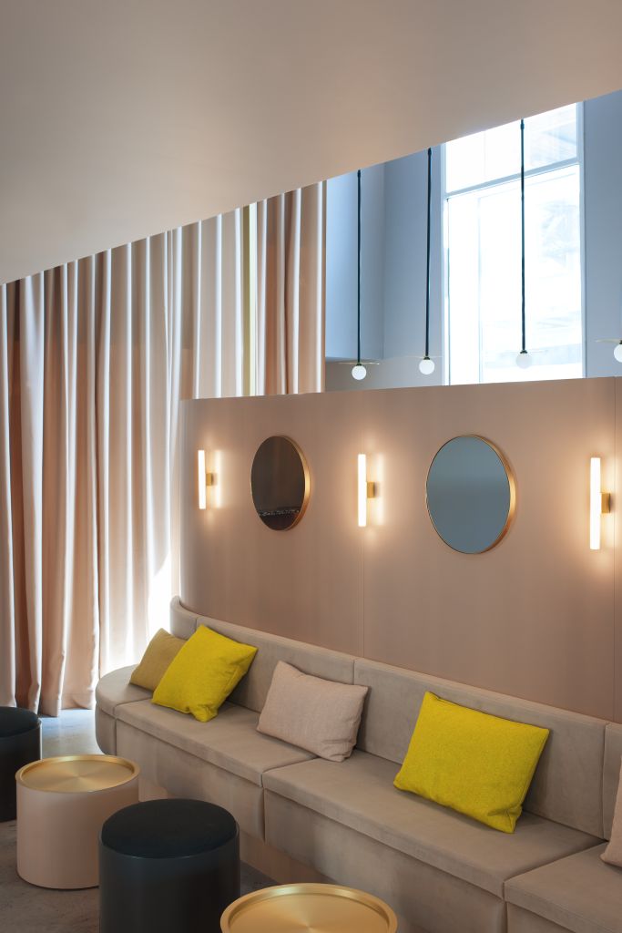Nel nuovo Okko Hotels Paris Gare de l’Est, The Club è un unico grande open space con vista sulla stazione disegnato da Studiopepe. Con luci al neon, soffici tappeti circolari e sinuosi divanetti rosa