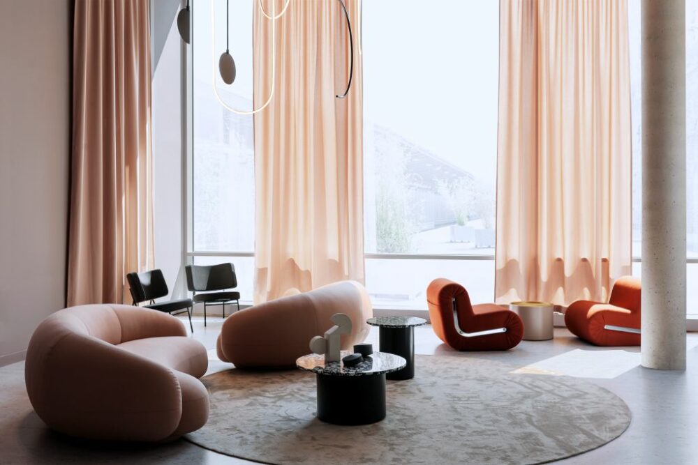 Nel nuovo Okko Hotels Paris Gare de l’Est, The Club è un unico grande open space con vista sulla stazione disegnato da Studiopepe. Con luci al neon, soffici tappeti circolari e sinuosi divanetti rosa