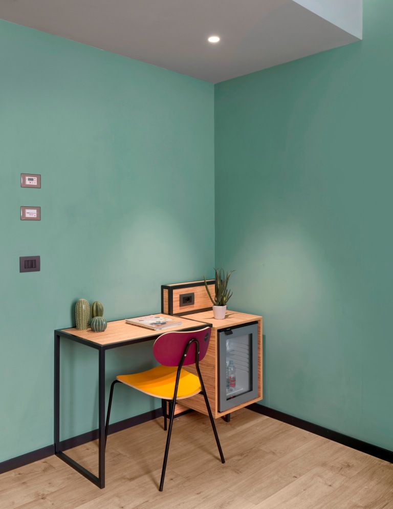 “Il design degli interni è ispirato direttamente alla modernità eclettica dell’edificio, e vuole mantenere vivo il contrasto tra elementi costruttivi e decorativi”, dichiarano gli architetti. Parallelamente il concept di marketing per il The Poet Hotel – nome chiaramente ispirato al Golfo dei Poeti – è stato pensato da Teamwork Hospitality per soddisfare le esigenze di un turismo contemporaneo, fatto di soggiorni veloci, e per una clientela giovane e social, sempre connessa e in continuo movimento.