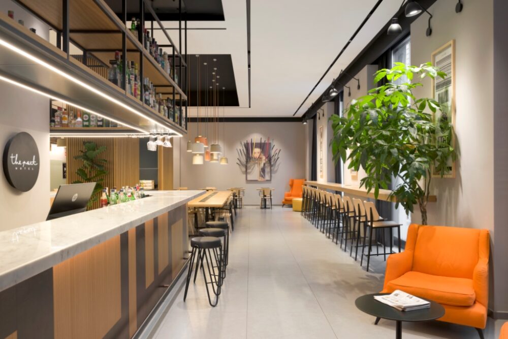 “Il design degli interni è ispirato direttamente alla modernità eclettica dell’edificio, e vuole mantenere vivo il contrasto tra elementi costruttivi e decorativi”, dichiarano gli architetti. Parallelamente il concept di marketing per il The Poet Hotel – nome chiaramente ispirato al Golfo dei Poeti – è stato pensato da Teamwork Hospitality per soddisfare le esigenze di un turismo contemporaneo, fatto di soggiorni veloci, e per una clientela giovane e social, sempre connessa e in continuo movimento.