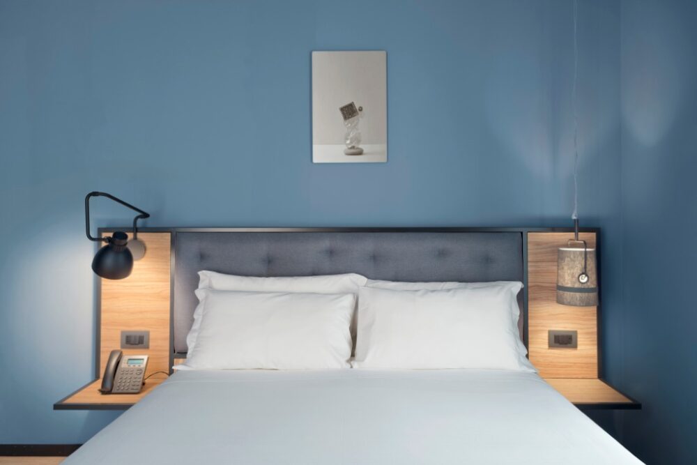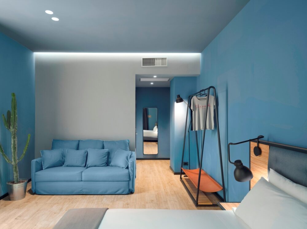 Quello che ne deriva è uno spazio vitale e dinamico e, al tempo stesso, un percorso emozionale fatto di contrasti visivi e materici. Una selezione di opere di artisti spezzini arricchisce l’atmosfera sia delle camere che degli spazi comuni.